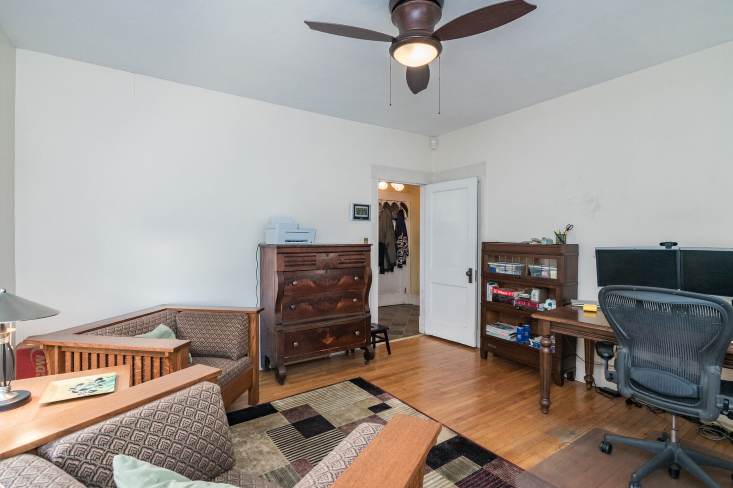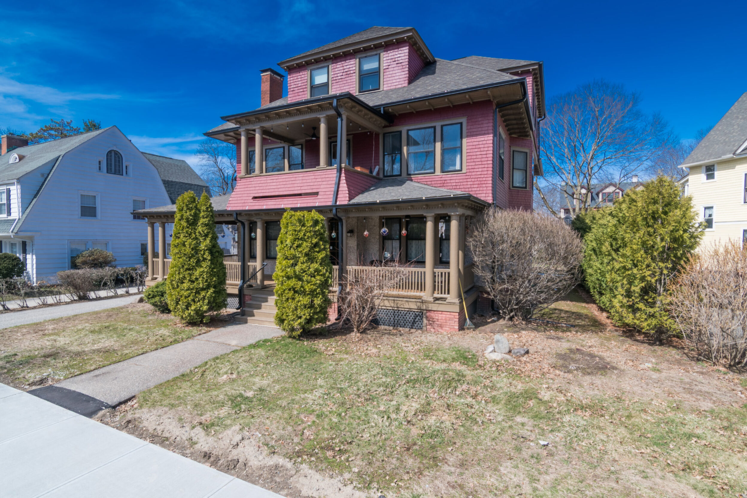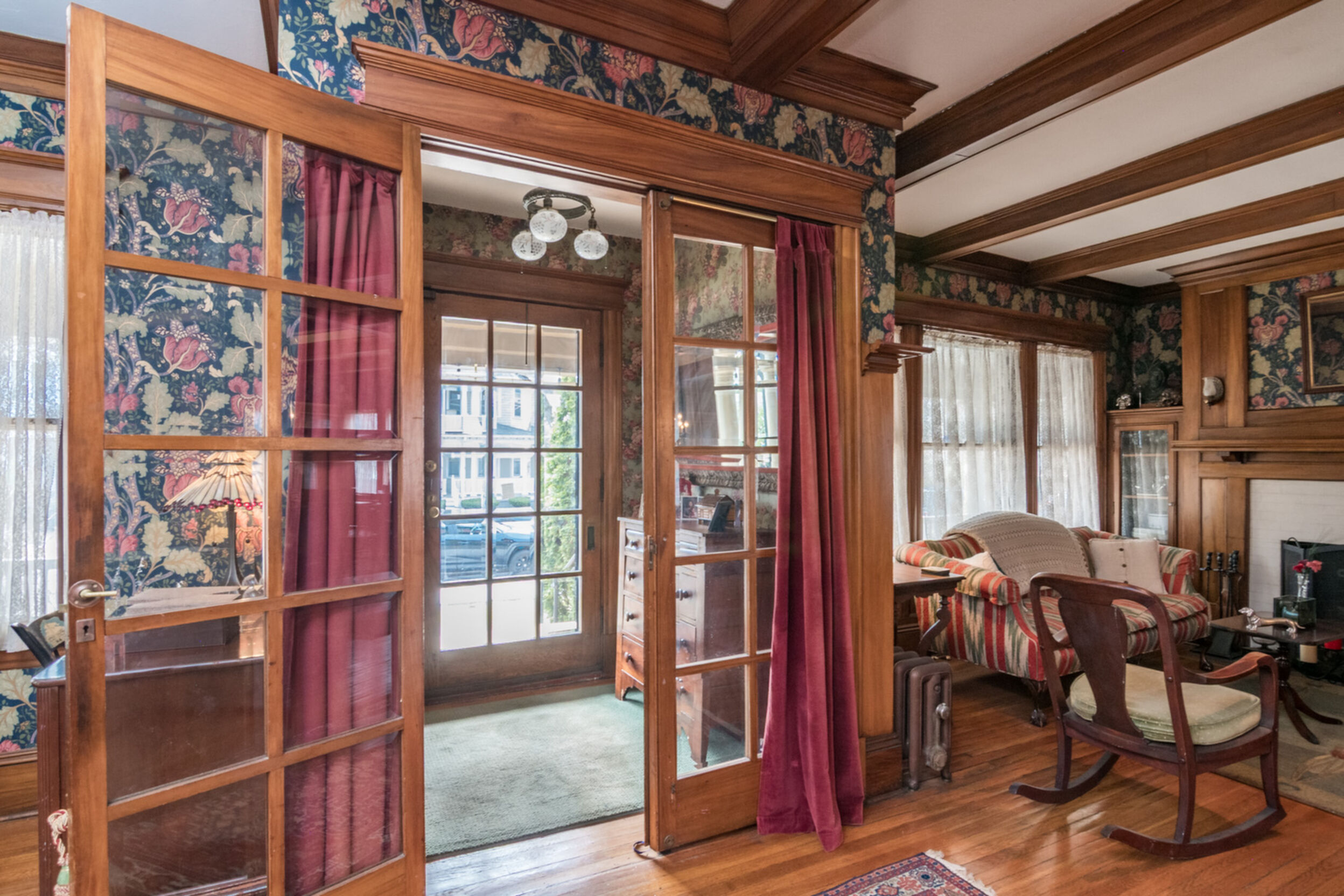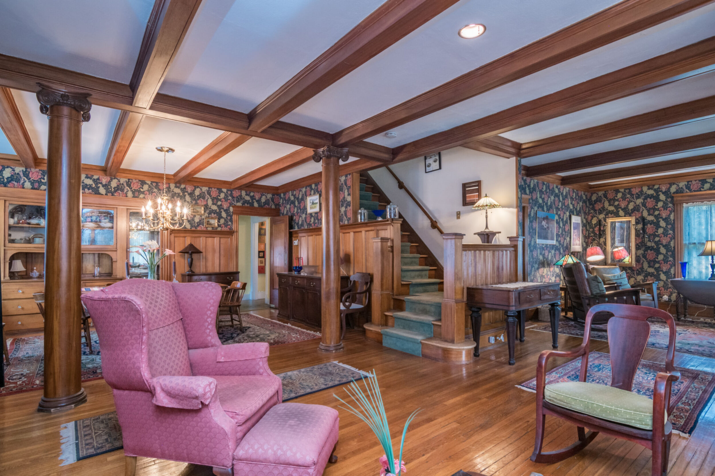 Perfect for the Owner-occupier, this beautiful 2 family home in the heart of the Historic District is a unique opportunity to own a beautiful home and have a tenant pay your mortgage. Both units are large and roomy with hardwood floors throughout and a fireplace in each unit. The first unit spans the 1st and 2nd floor and offers 4 bedrooms and 2 full baths. Its living room provides an environment of refined comfort, featuring a beamed ceiling and elegant crown molding that articulate its classic design. A welcoming fireplace serves as a focal point, contributing warmth and ambiance, while the coffered ceiling adds a layer of architectural sophistication to the space. Culinary endeavors are elevated within the kitchen that offers extensive workspace and an ideal setting for casual gatherings. The second unit spans the 2nd and 3rd floors and offers three bedrooms and a full and a half bath. This is truly a unique home that is a special find. Both units will be vacant at closing.
