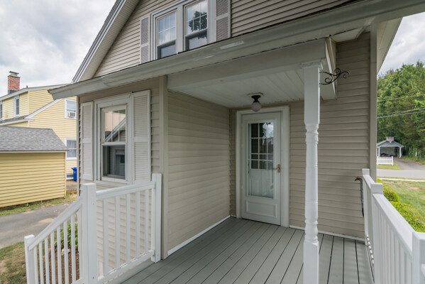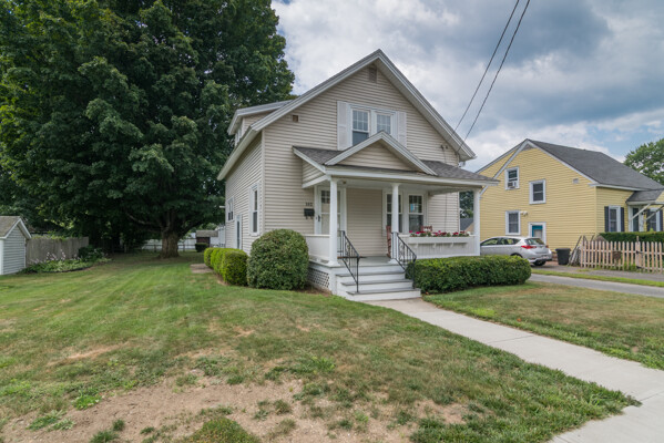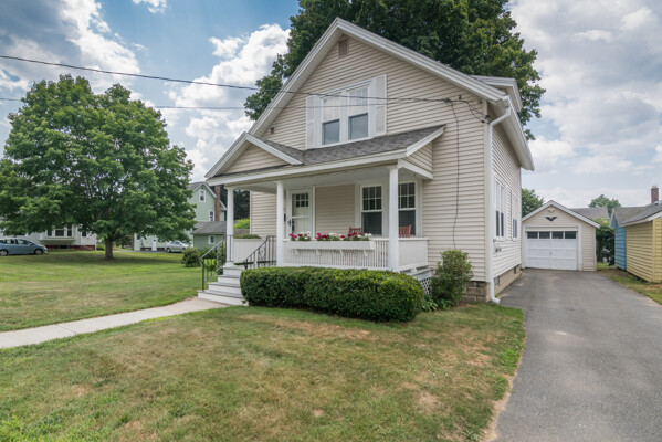 From the welcoming front porch to the backyard shaded by mature trees, this charming 1930 home invites you to slow down and settle in. Inside, youll find timeless hardwood floors flowing throughout the living and dining room, framed by original wood trim and french doors. The updated country kitchen features stainless steel appliances, plenty of counter space, and a walk-in pantry. Upstairs are two good sized bedrooms both with walk-in closets and an updated full bath. Out back, the level yard offers room to relax, garden, or play, complete with a one-car garage and storage shed. Major improvements like a newer roof (2019), vinyl siding and windows, new oil tank, and added insulation in 2023 mean you can move in with confidence. With easy access to shopping, schools, hospital and I-91 & Rt. 2, this one won't last long! Schedule your showing today!