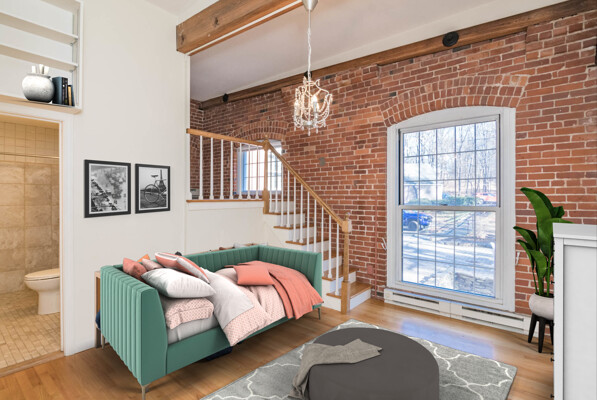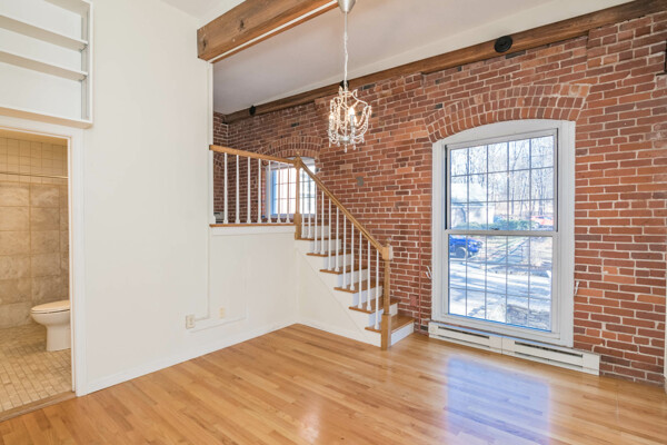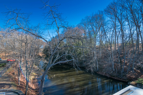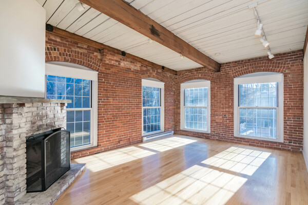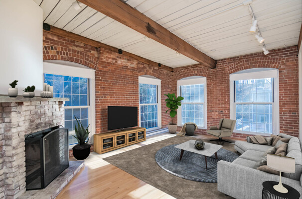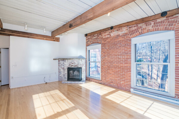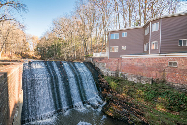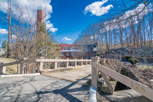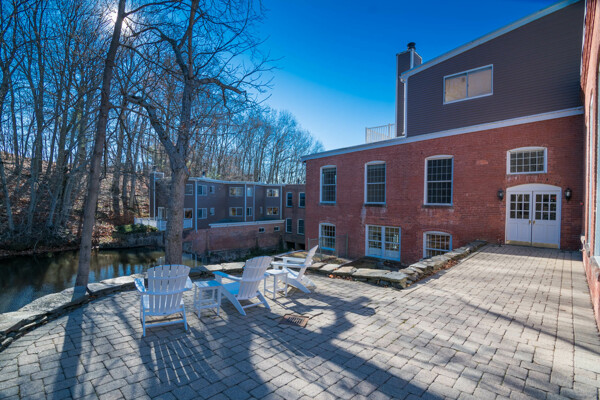 Dramatic and light filled unit at ........THE MILL ...with full views of the pond and waterfall.Spacious living space with wood beamed ceilings and exposed brick details and fireplace.The primary suite has a large deck overlooking the pond and waterfall, in suite bath and walk in closet and laundry.The second split level bedroom is on the main floor with its own bath and walk in shower.........close by to the Village Commons and Mt. Holyoke College.