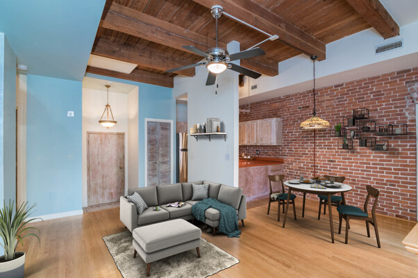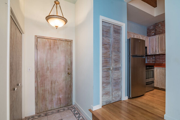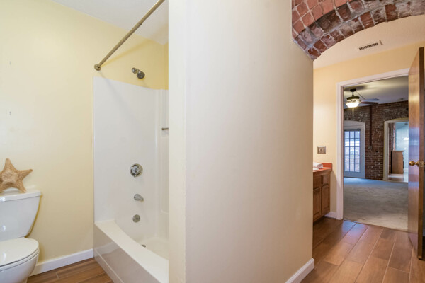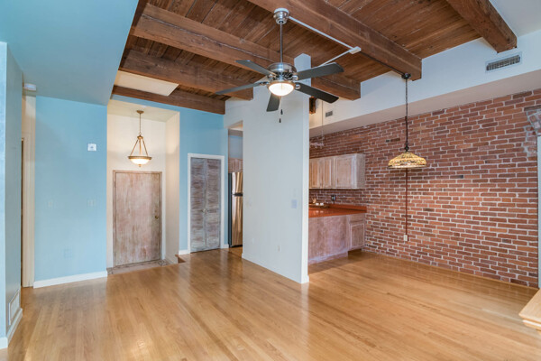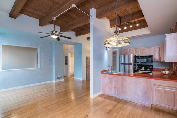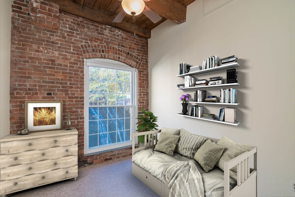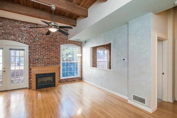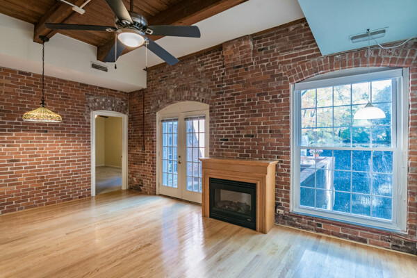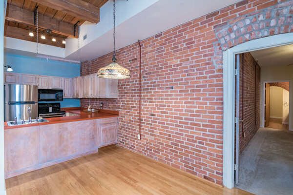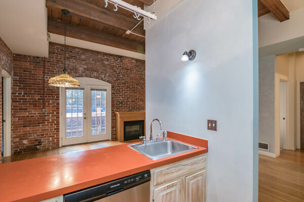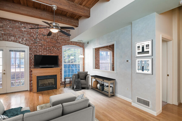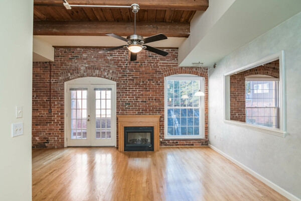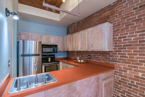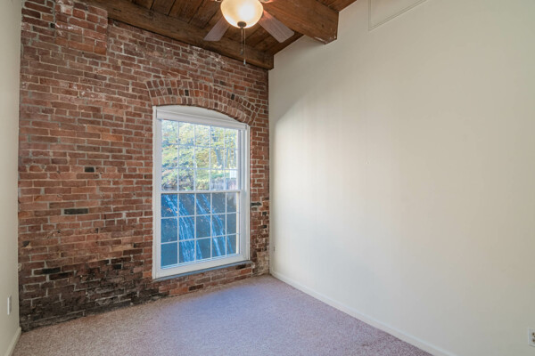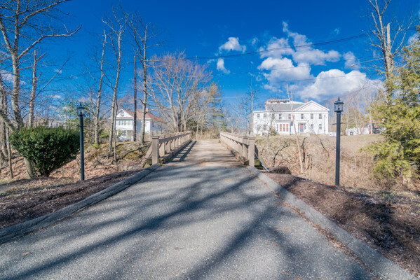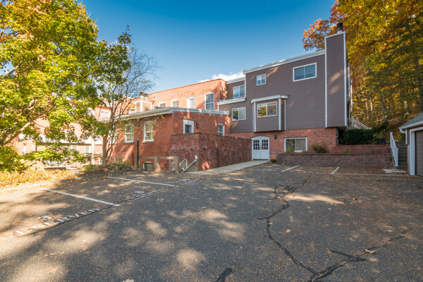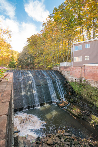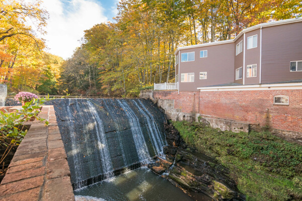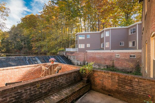 Rare Garden style condo with patio and waterfall view at 'The Mill'. This charming unit has an open floor plan for the living room, kitchen and dining area with exposed brick and beams as well as oak hardwood floor and an amazing view of the waterfall.The large primary bedroom suite with full bath has abundant closet space and also has patio access.The second bedroom which could also be a den or office has a waterfall view as well. The location is is walking distance to the center and Village Commons.......A must see!........South entrance over bridge.