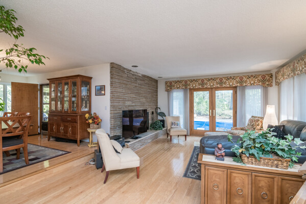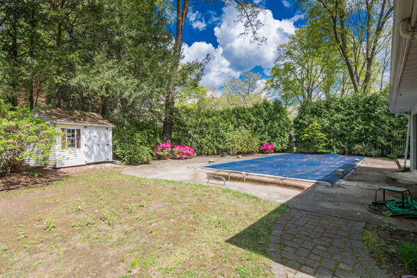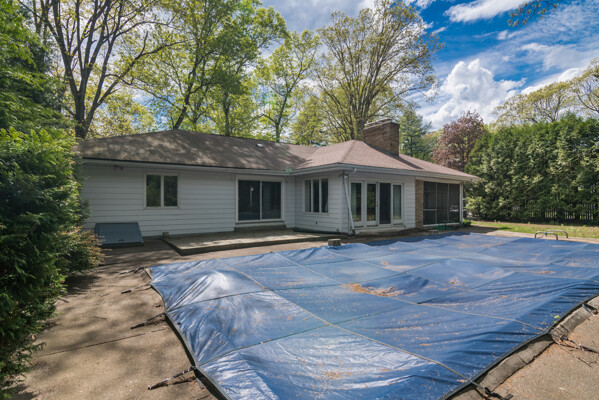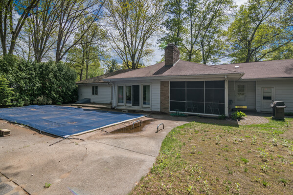 Nestled in a highly sought-after area, this custom built Chapdelaine ranch has been owned by the same family & is ready to welcome new owners! As you enter, a large foyer leads you to a spacious living room with beautiful wood floors, fireplace & atrium doors to a private backyard oasis with a built-in pool. The bright, expansive kitchen has a dining area, granite center island & a stunning wall of windows. The dining room boasts wood floors & access to a serene screened-in porch. A curved wall leads you to a versatile den/family room with built-ins & newer sliders that open to the patio & pool area. The primary bedroom has an en-suite bath & a walk-in closet, the main bath offers double sinks and serves two more spacious bdrms. The lower level is an entertainer's dream, featuring a built-in bar & rec room. Additional amenities: first-floor laundry, central air & vac, lawn sprinklers, an outdoor shower & a shed. This lovely home provides everything you need for comfortable living!