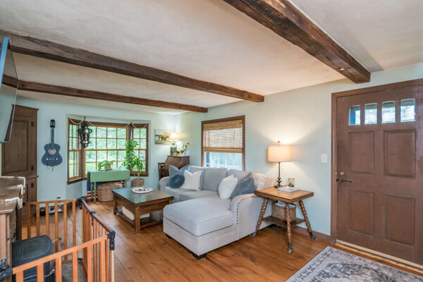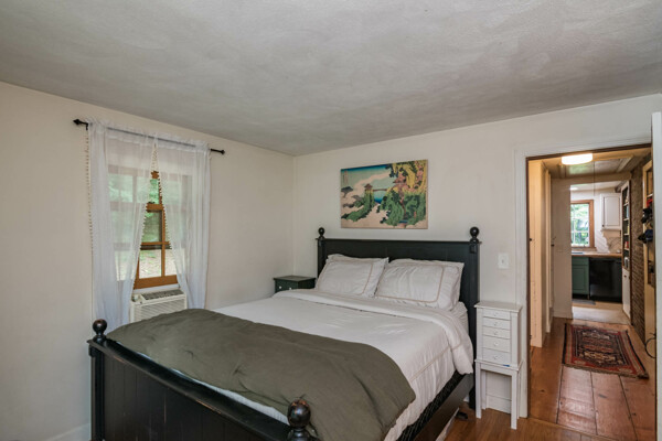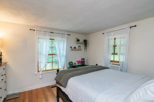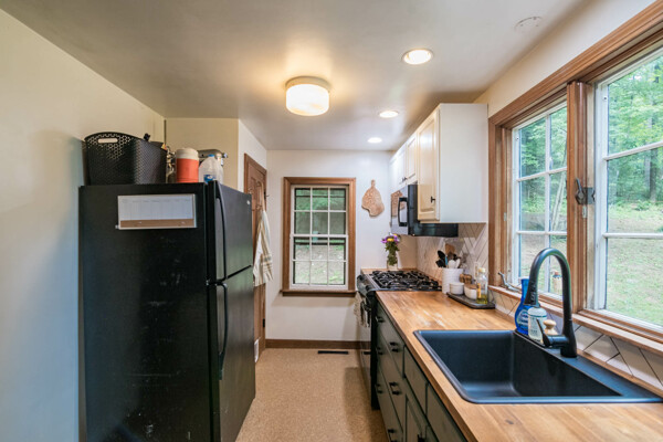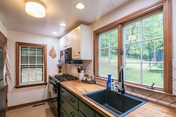Enjoy quiet country living on this 1.08 acre wooded lot. Surrounded by beautiful stone walls, walk up the goshen stone walkway to this charming two bedroom one bath ranch. This mostly open floor plan provides a large living space with beautiful built ins, an alluring bay window and a centrally located fireplace with wood stove insert. The galley farmhouse kitchen has many updates including butcher block countertops and newer appliances-with a gas range. The back deck provides the perfect place to grill and enjoy an outdoor meal. A drive under garage with storage and laundry are accessible from above level. Close proximity to Amherst Center and surrounded by hiking and walking trails. You won't want to miss out on this cozy, single level living! Deadline set for 12/9/24 at 5pm.
