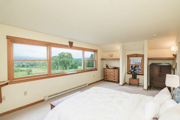 STUNNING views await at this impeccably maintained South Amherst home! As you enter, a warm and open kitchen greets you. Sip morning coffee in the cozy kitchen alcove and finish your day by the propane stove - perfect for those chilly New England nights. A large walk-in pantry also boasts convenient main floor laundry. A proper dining room, light-flooded living room and 2 bedrooms round out the West wing of the home with 2 additional rooms upstairs in the attic just waiting to be brought back to life! Wake up to gorgeous sunrises over the mountains as you gaze out the picture window of the primary suite addition. Tinker in the basement workshop or the huge 2 story, 40x60 barn. House has 3 garage spaces & 2 addt'l in barn! The manicured grounds set on 2.43 acres with deck & stone terrace are perfect for entertaining. Downtown Amherst & nature trails nearby! The classic charm of yesteryear combined with comforts of today, this is the one! OPEN HOUSE THURSDAY 4:30PM-6PM.