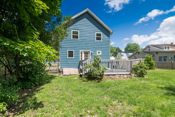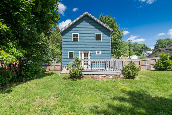 From the enclosed front porch, step into this charming colonial farmhouse convenient to the bike path, Smith College, the dog park, community gardens, with easy access to Easthampton, downtown Northampton, and I-91. Current owner added three minisplits, repainted the interior and exterior, and had the large back yard fully fenced. Inside, an updated and spacious kitchen with maple cabinets, breakfast bar, and gas stove.Sunny dining room with hardwood floors opens to large living room. Minisplit in LR cools the first floor. Off the kitchen is a fully renovated bath, nearby is a door to the deck overlooking the back yard, perfect for play, gardening, or relaxing. Upstairs are three bedrooms, two with minisplits, plus a large closet for added storage (or room for potential 2nd bath).
