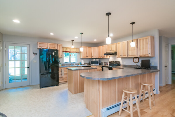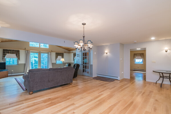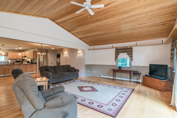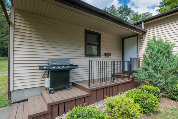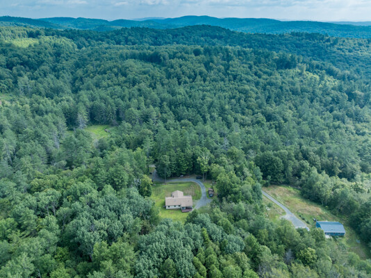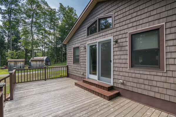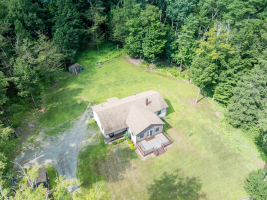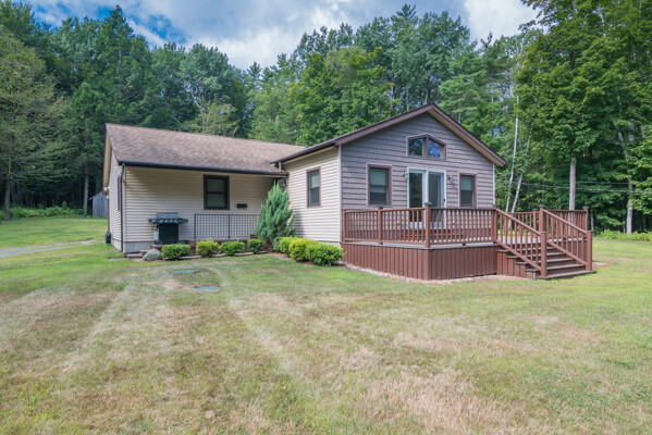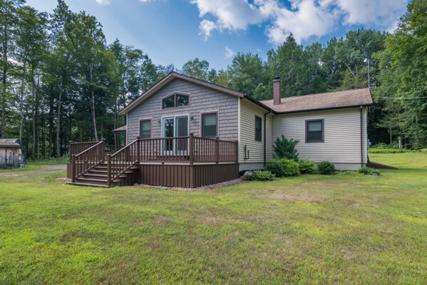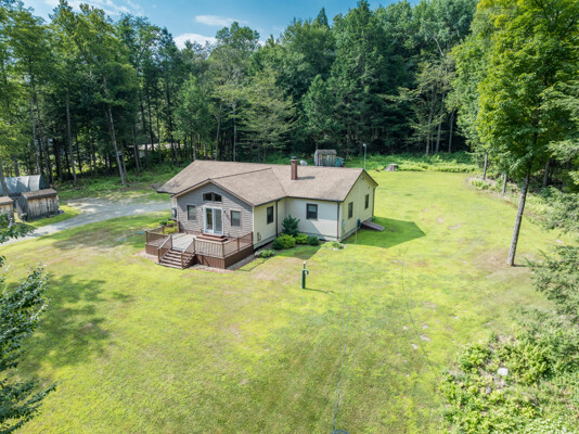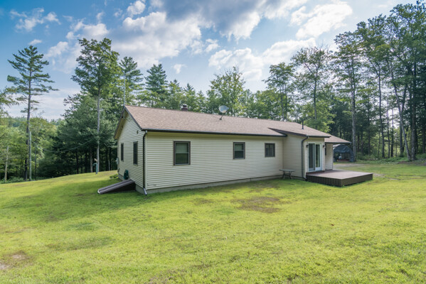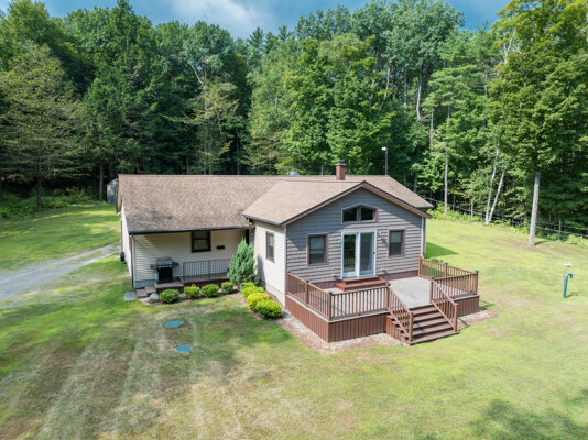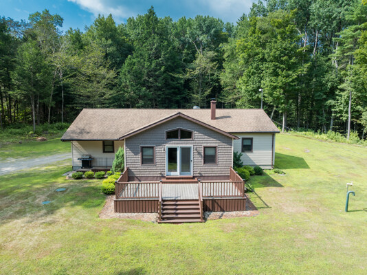 Nestled on nearly 8 peaceful acres, this 2013 custom-built ranch home offers space, comfort, and the perfect backdrop for your next chapter. Designed with an open layout, the main living area welcomes you with vaulted ceilings & warm, wood flooring that flows seamlessly from the living room into the dining area & kitchen. Hickory cabinets, a center island, and plenty of counter space make the kitchen as functional as it is inviting. The primary bedroom sits privately on one side of the home with its own dedicated full bath, while two additional bedrooms & a second full bath are located on the opposite side. Step outside to enjoy both front & rear decks and a sprawling yard that invites all kinds of possibilities. With three outbuildings already in place & room to roam, the potential to have your very own homestead is well within reach! Its the kind of setting where you can slow down & spread out, all while staying within easy reach of Greenfield, I-91, and the surrounding region!