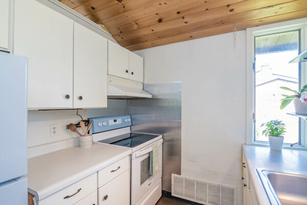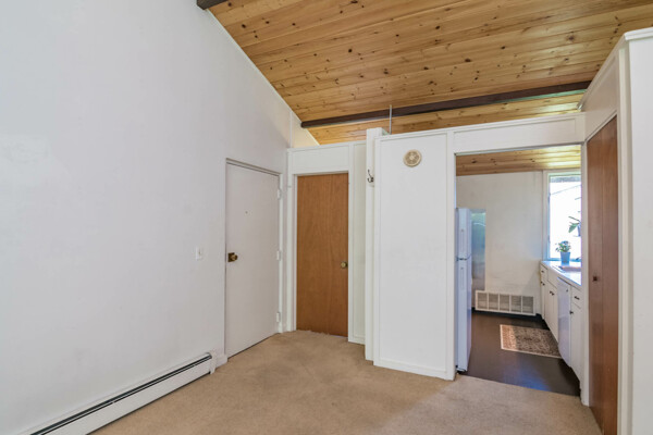 Beautiful views and A+ Amherst location! This two bedroom, one bathroom corner condo showcases stunning pine cathedral ceilings throughout. Upon entry, there is a large storage closet w/ window off of the spacious living room. The bright kitchen has freshly painted cabinets, new refrigerator (2023), stove (2021) and dishwasher w/ a good-sized pantry. The lovely balcony is perfect for relaxing with your morning coffee and is accessed from the living room or from a separate entrance outside. Two large bedrooms have a great amount closet space and the full bath includes a linen closet. Head to the basement for private storage area and common laundry. Parking space is conveniently located. Close proximity to schools, UMass, Amherst College, PVTA bus line, downtown restaurants, shopping and everything you need! Why continue paying high rent when you can own your own home? Excellent opportunity in sought-after Amherst.