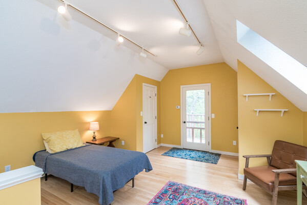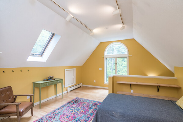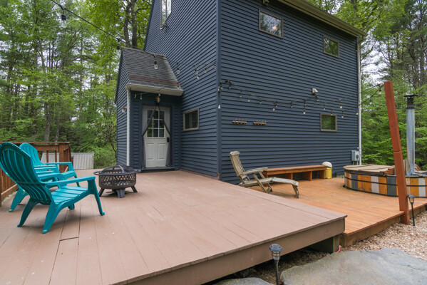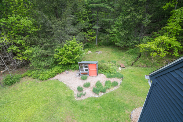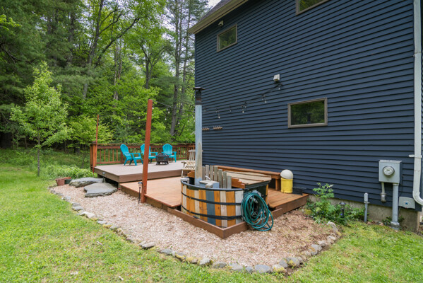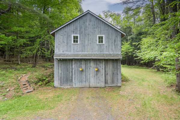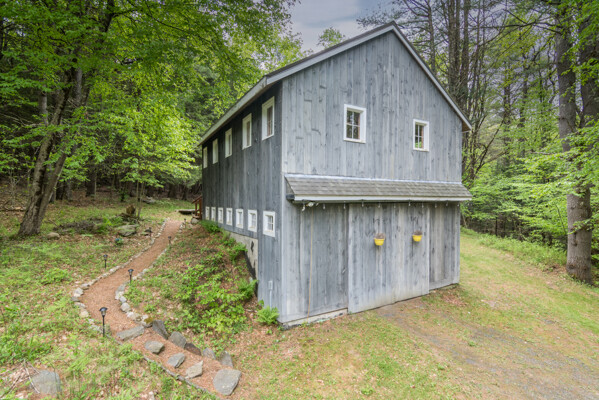 Sun-filled contemporary colonial on 6.7 private acres, including a large 32x24' garage w/high ceilings & 2nd floor studio space! Set back from the road this property includes country chic interiors & delightful outdoor space including plentiful decks, wood-fired hot tub, Goshen stone walkways, perennials, and trails going to the Westfield river & connecting to state land. Inside you will find an open floor plan including kitchen, dining & living rm w/ woodstove & mudroom. Upstairs 2 generous beds & bath, and a delightful 3rd floor bedroom w/ skylights & balcony. You will feel like you're sleeping in a treehouse! The studio space over the garage was built to hold heavy machinery & has big windows & track lighting, perfect for an art studio or workshop space, and currently used as summer-time sleep loft. A wonderful country home, in a convenient location only 3 min. to the Old Creamery or 25 min. to Northampton.