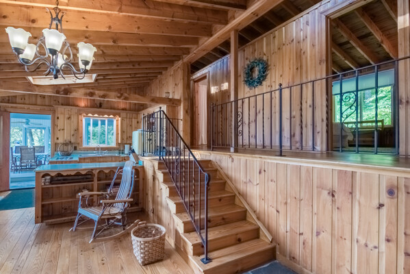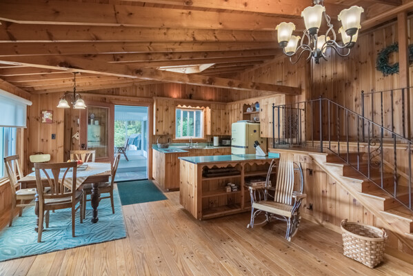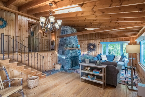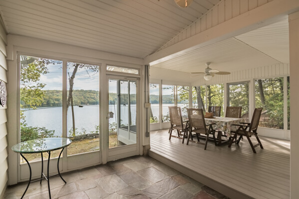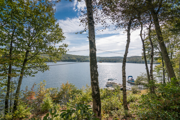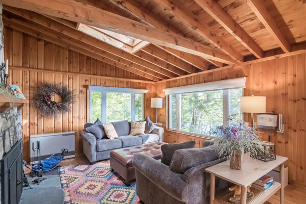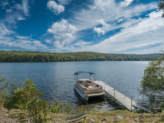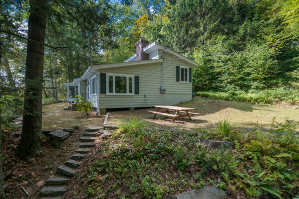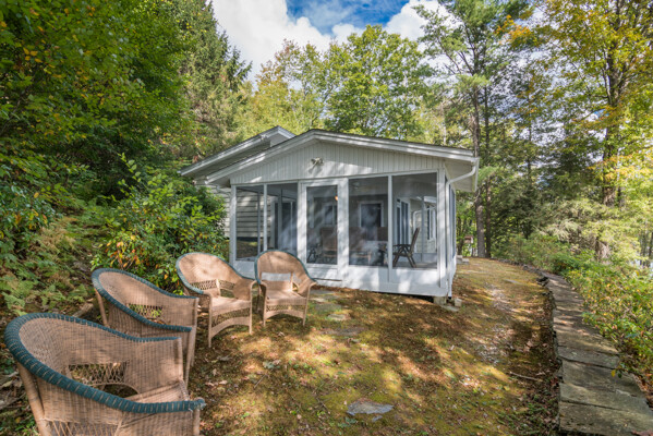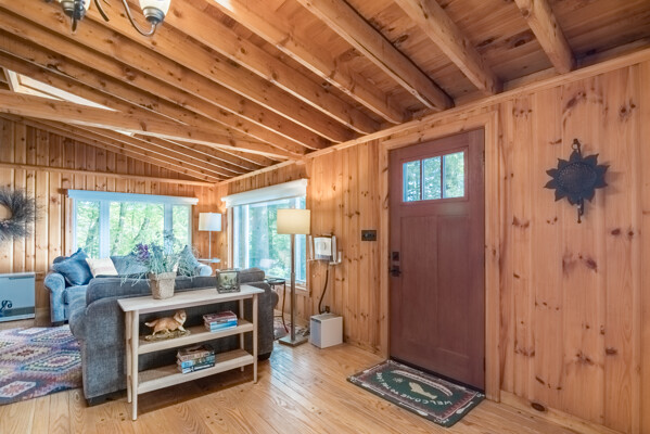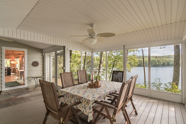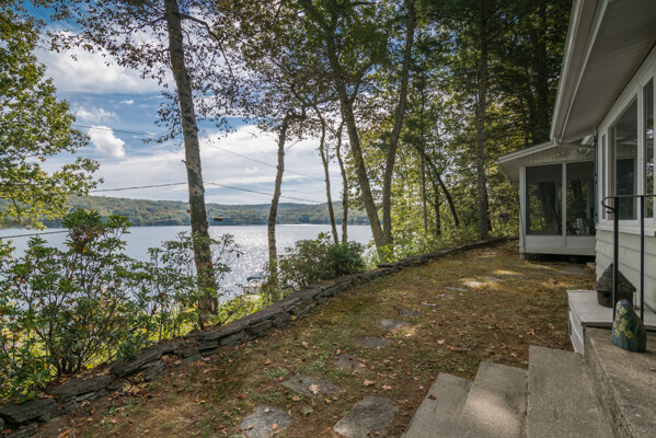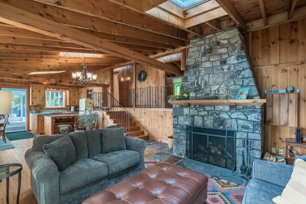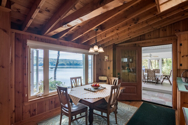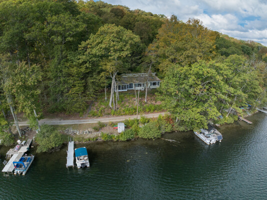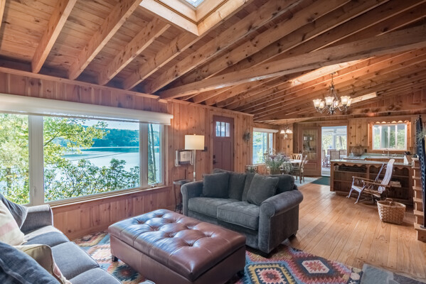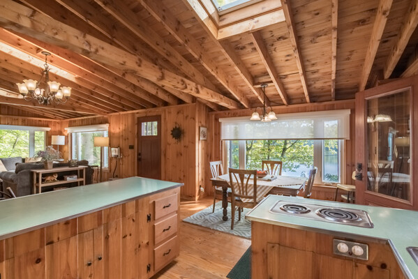 Welcome to your dream lake house! Charming seasonal cottage w/knotty pine walls + lofted ceilings, recently added skylights + all new Pella windows + doors, creating a light-filled living space w/epic views. Main room includes nostalgic original kitchen w/formica counters, built-in stovetop, + new retro refrigerator. Dining area + living room include large original stone fireplace - a beautiful centerpiece for the room. Rinnai propane heater provides back up heat for chilly nights. Split level second floor includes three spacious bedrooms + 1 full bath. Off kitchen is large screen porch w/both trex + stone floors. Each room in house is oriented towards the beautiful, 122 acre Norwich Lake - with pristine waters for FISHING, boating and swimming!! House includes 100 FT OF LAKE FRONTAGE providing ample opportunity to build a private deck at the shoreline. Home conveys with 2 private docks. First lakefront home for sale @ Norwich Lake since 2024. 30 mins to Berkshires or Northampton