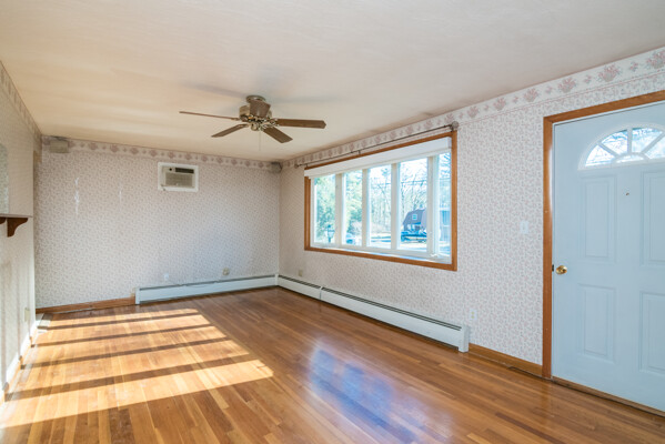 Set on a flat .65 acre lot, this 2 bedroom, 1 bath ranch feels instantly welcoming. Sunlight filters through the living room's large window, warming the hardwood floors and giving the space an easy, relaxed feel. From there, the dining room's built-ins add a touch of character and open to the deck and covered patio, an effortless extension of the home where cookouts, quiet mornings, or weekend projects all fit naturally. The main bedroom offers thoughtful storage with its custom built-in wardrobes, keeping everything organized without sacrificing space. The oversized two-car garage is a true bonus, offering space for tools, hobbies, and a full loft for the extras you want tucked away. Downstairs, bonus rooms in the basement give you options to create, spread out, or store what matters. It's a place that feels simple, comfortable, and easy to make your own--come see how it fits your next chapter!
