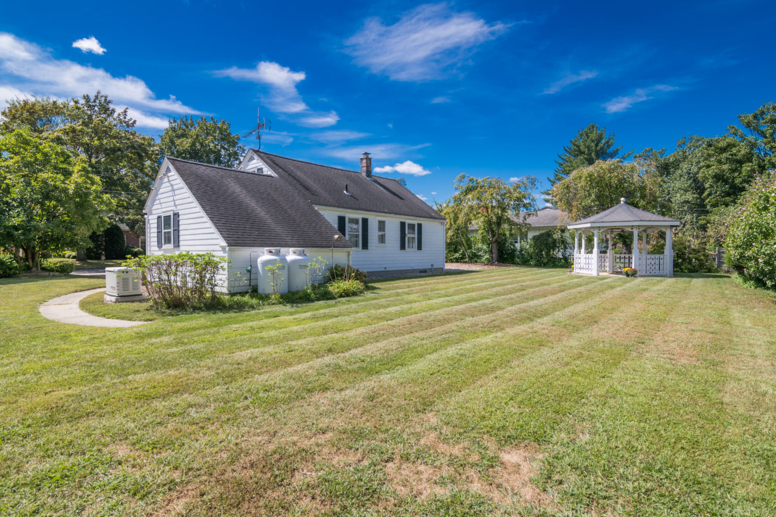 A Great Cape in a great neighborhood !...............This charming home is situated on a beautifully landscaped corner lot with mature plantings and large gazebo to enjoy the outdoors.Whether you're downsizing and would like a first floor bedroom or you're a first time home buyer who wants the potential to expand to the second floor you will enjoy the hardwood floors, skylight and a three season room. Abundant built in cabinets and a large work bench in the basement along with a large heated laundry room. Recent updates include roof replaced in 2022, whole house propane generator 2023, furnace 2025, updated electric. Easy access to the highway, and nearby amenities, shopping, bike path and schools.