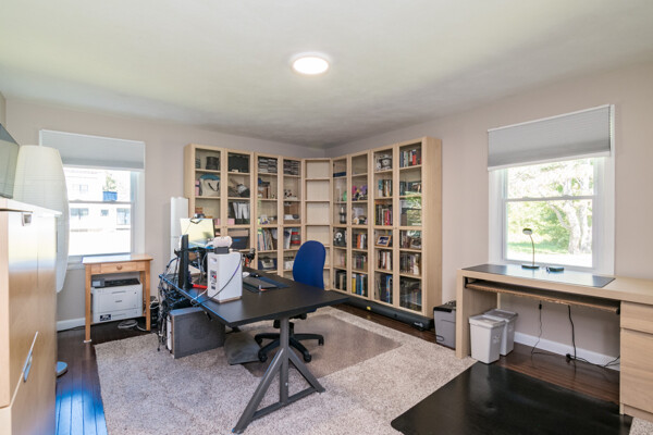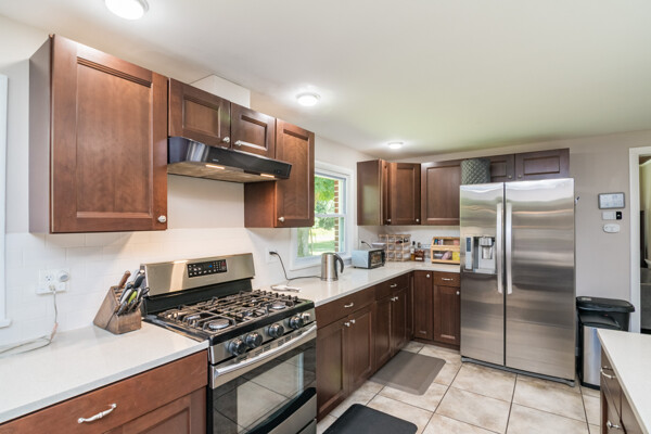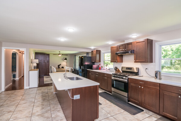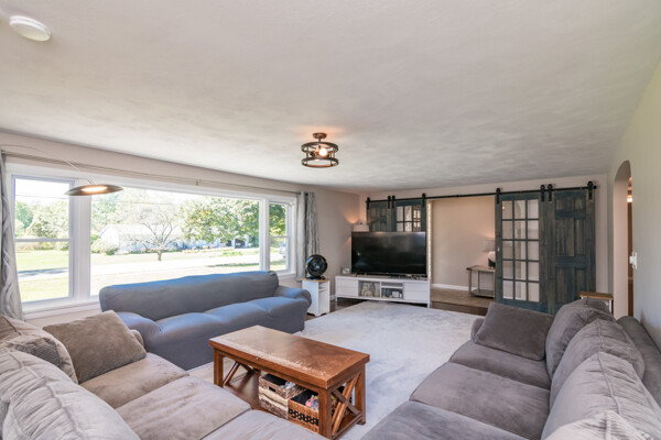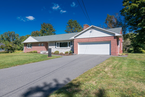Nicely updated ranch set on 2/3 of an acre on a desirable, quiet Hatfield street. Huge kitchen features quartz countertops, custom cherry cabinets, & an 8-foot island, & opens to the dining area for easy entertaining. Large living room w/ wood-burning fireplace. Primary bedroom, currently used as an office, includes a cedar closet & en-suite bath with double vanity, granite countertops & a tiled walk-in shower. 2 more bedrooms, one currently used as an office, both have cedar closets. A 2nd bath also has a double vanity. The enclosed porch between the garage and kitchen offers a nice view of the large back yard, perfect for perennial gardens or play. Terrific clean basement w/ insulated duct work is perfect for storage, workshop, or finish it for a den or rec room. Anderson Silver Lining windows. Roof & garage door new in 2020, Central air & updated electrical. 2-car garage, and a main level & basement laundry hookups, too!