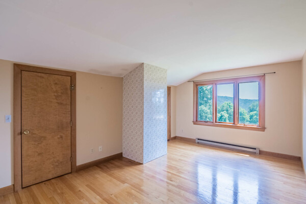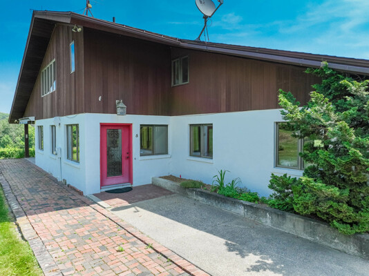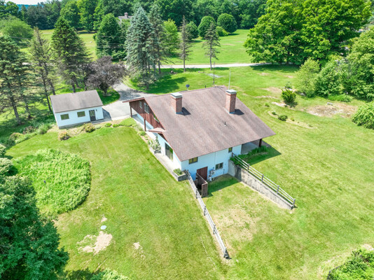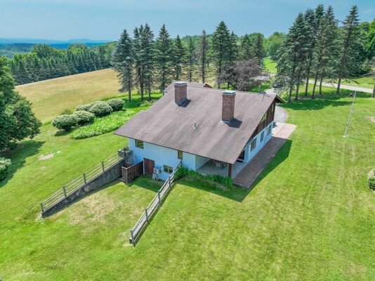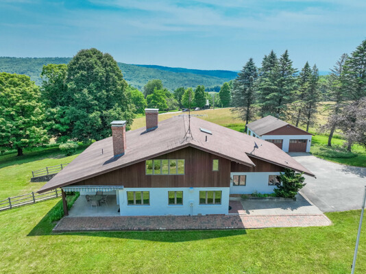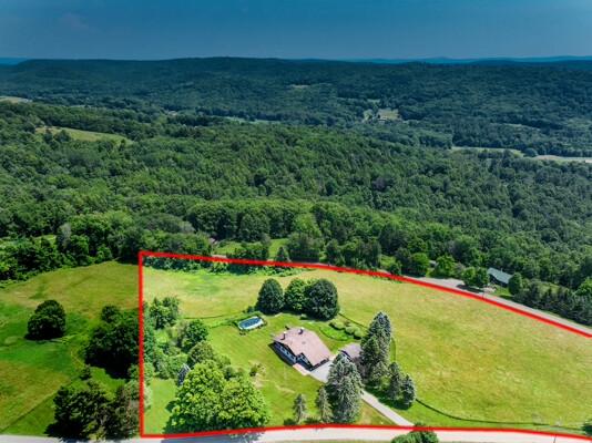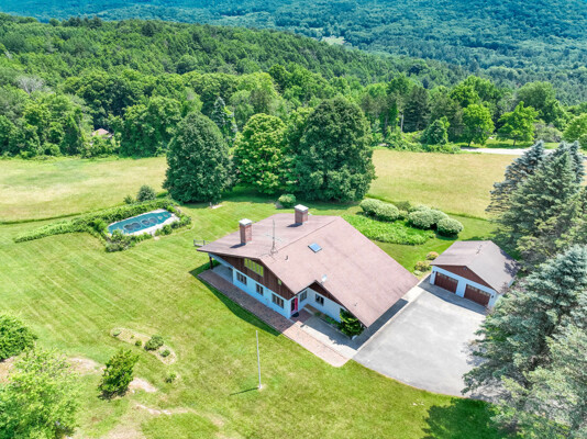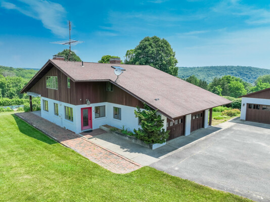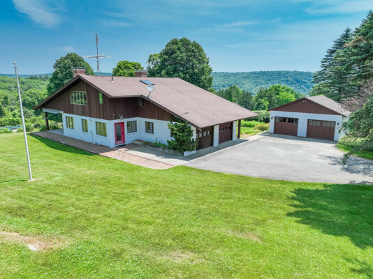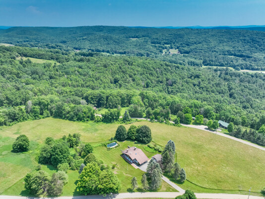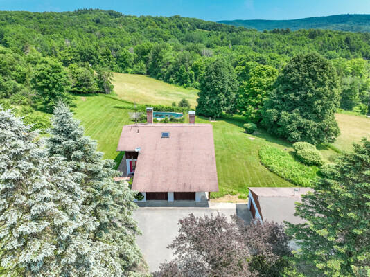 Welcome to your private retreat! This contemporary 4-bedroom, 2-bath home, built in 1982, is perched on a scenic 5.3-acre hilltop, offering breathtaking long-range views and ultimate privacy. Enjoy the elegance of hardwood floors throughout. The first-floor bedroom features an ensuite bath and a slider to the outdoors, making it ideal for easy access and comfort. The kitchen, complete with granite countertops and a charming woodstove, is perfect for cozy family meals. The convenience of first-floor laundry and generous storage with walk-in attics on both sides of the house is a plus. Relax and entertain by the inground pool, and take advantage of the three-car garage for ample storage. Despite its peaceful setting, highway access is less than 15 minutes away, providing the perfect blend of seclusion and accessibility.