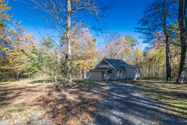 This charming 2-bedroom, 1-bath Bungalow-style home on 10 acres offers the perfect mix of comfort & privacy! Move-in-ready, this home is ideal for first-time buyers or those looking to downsize. Step inside to discover an open-concept kitchen/living space with vaulted ceilings, creating an inviting area to relax or entertain. The first floor features a bedroom, a convenient mudroom leading to a spacious back deck, laundry hookup, and a full bath. Upstairs, the versatile loft-style bedroom offers endless possibilitiesuse it as a home office, guest room, or your personal creative haven! Located just minutes from Route 9 and the D.A.R. State Forest, and only 20 minutes from downtown Northampton, this is a rare opportunity you dont want to miss. Schedule your showing today!