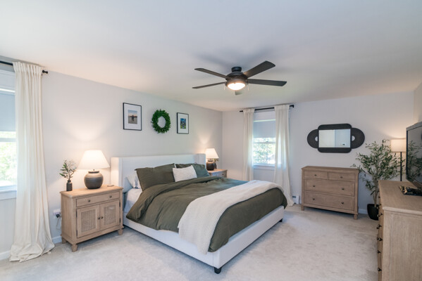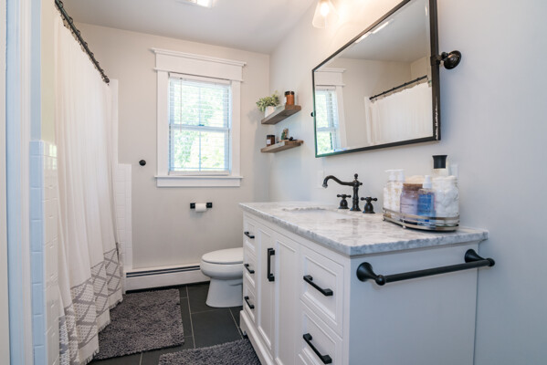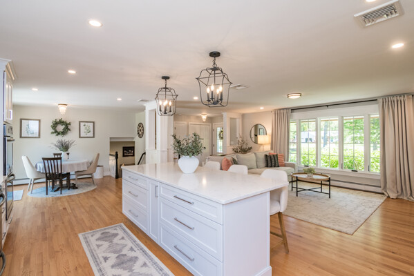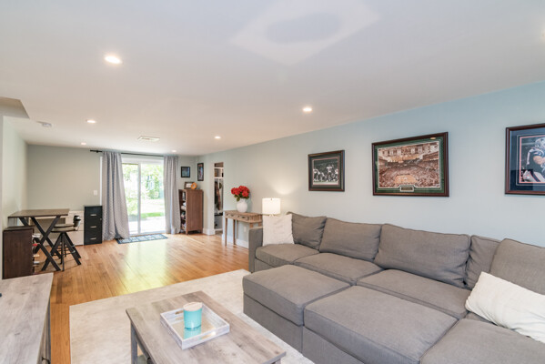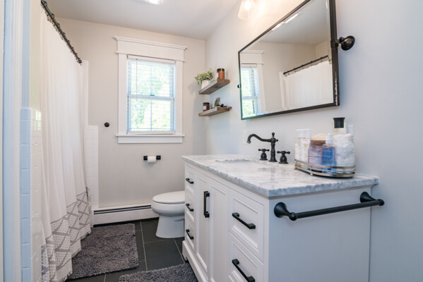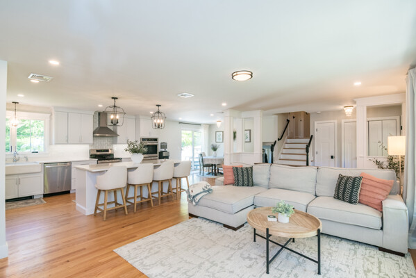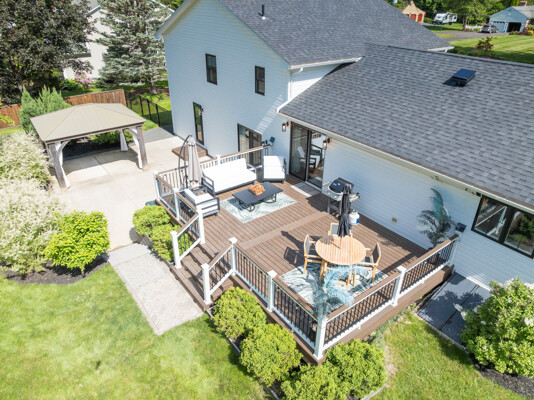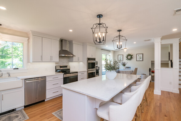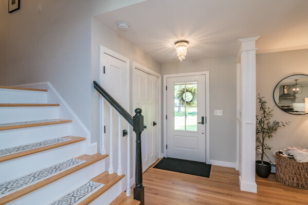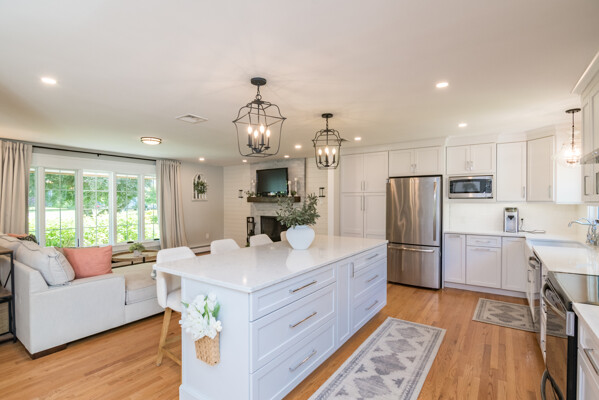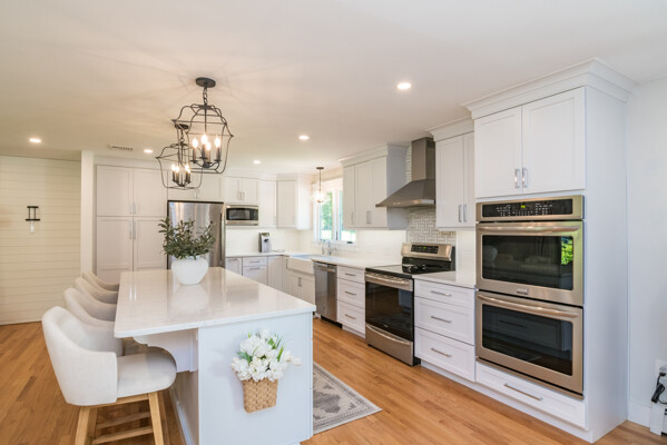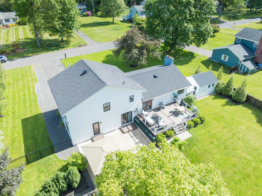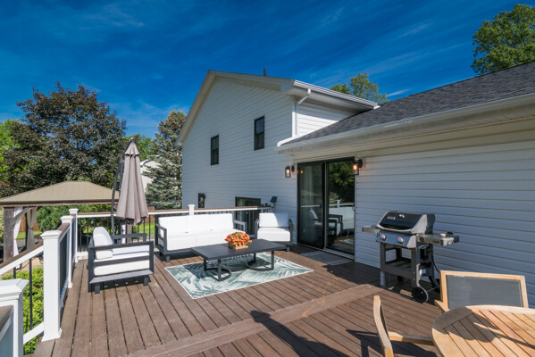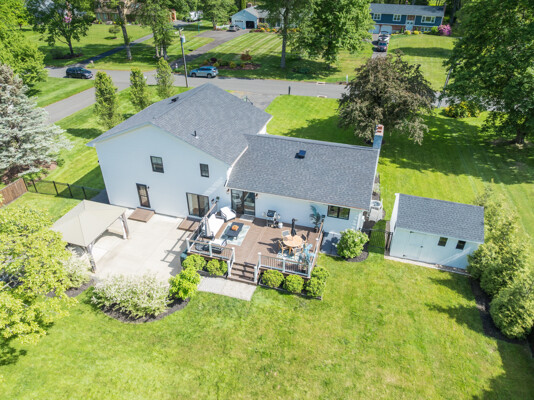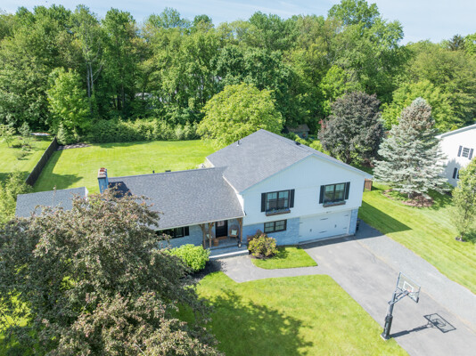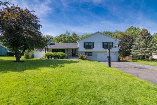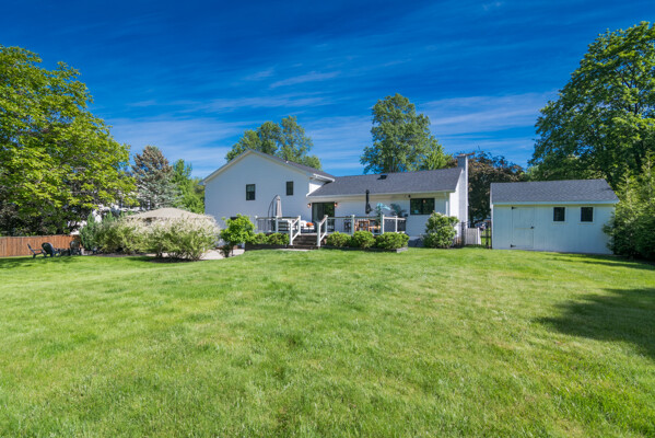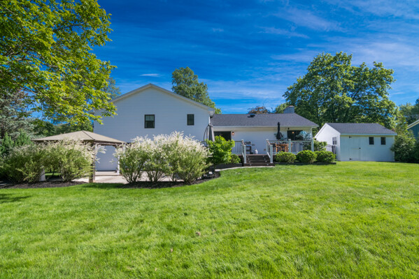 A beautifully remodeled split level with over 2000sqft of living space. The contemporary farmhouse design starts at the front door and extends throughout the home. Stepping through the front entry you are you are greeted with a spacious open concept kitchen, living room and dining area. The chef's kitchen is equipped with 3 ovens, induction cooktop, and large farm sink. The expansive island with gleaming quartz countertop provides a casual dining space. Steps down from the kitchen is large family room with access to the stone patio and sitting area with pergola. Beyond the family room is a convenient mudroom complete with built in storage and a half bath & laundry room. The upper level holds the primary suite, featuring a walk-in closet and updated full bath complete with double sink vanity and walk in shower. Two additional spacious bedrooms and the 2nd full bath round out the upper level. The back yard is an entertainer's paradise! Relax on your spacious deck, patio area featuring pergola, around the fire pit or on the lush lawn! A storage shed adds additional storage space in the fully fenced backyard oasis. DO NOT miss this stunning home!