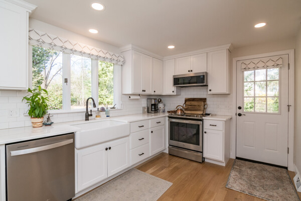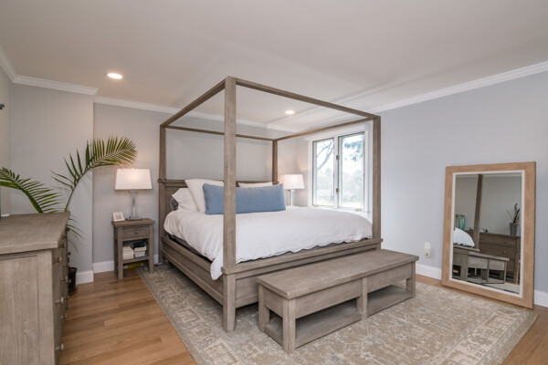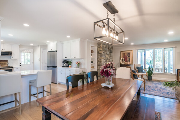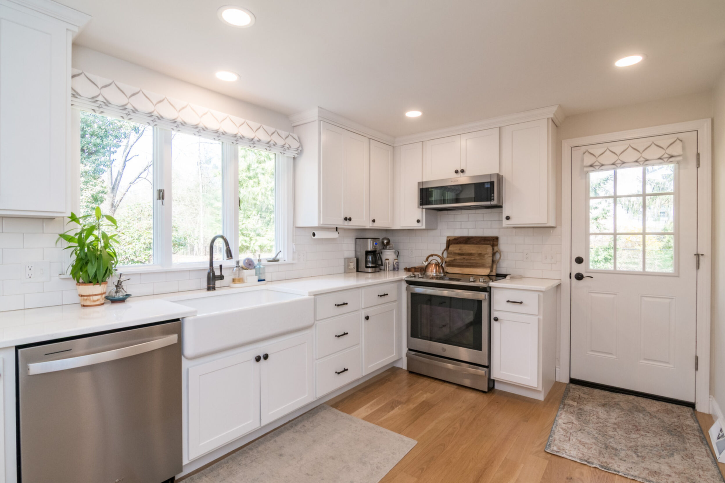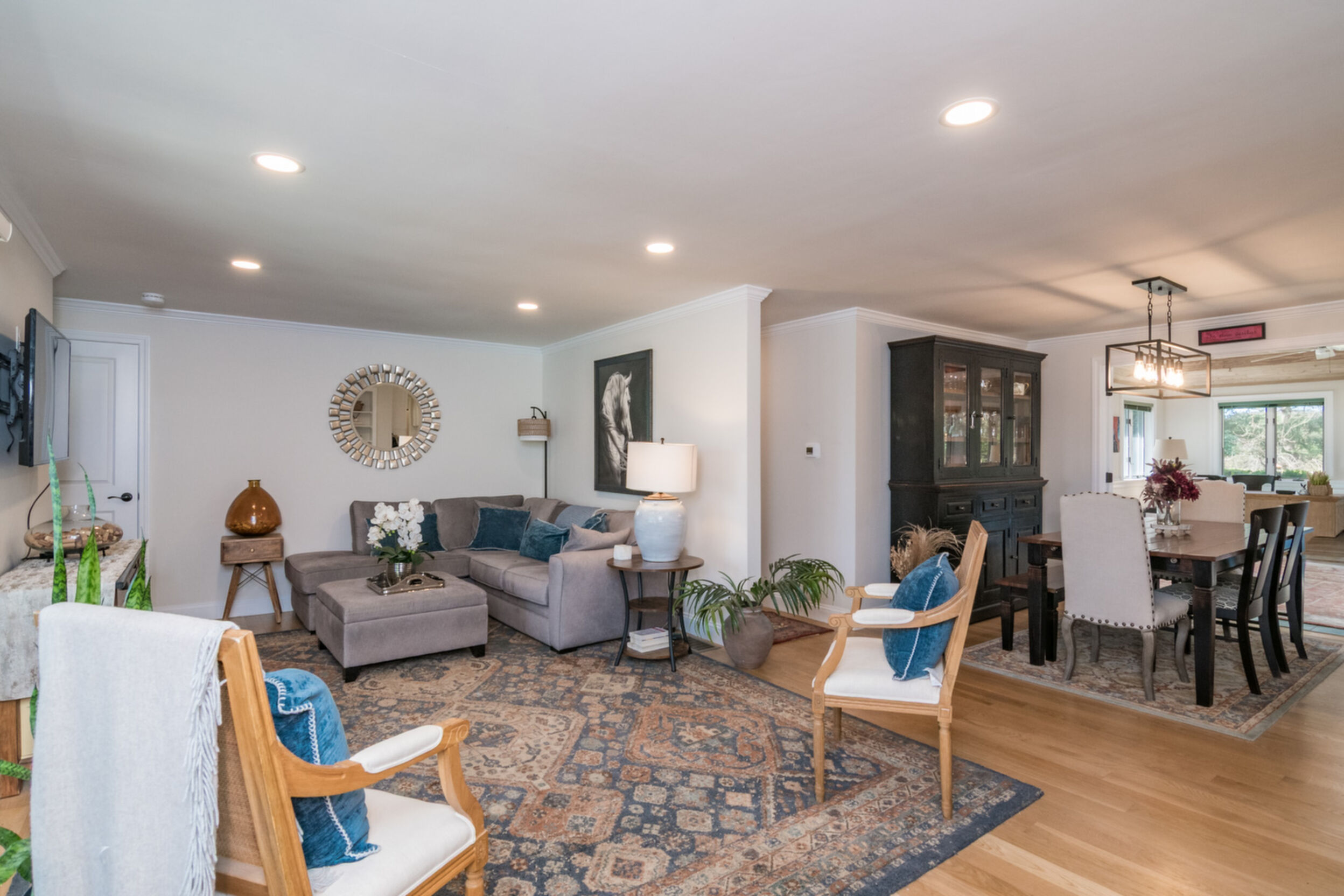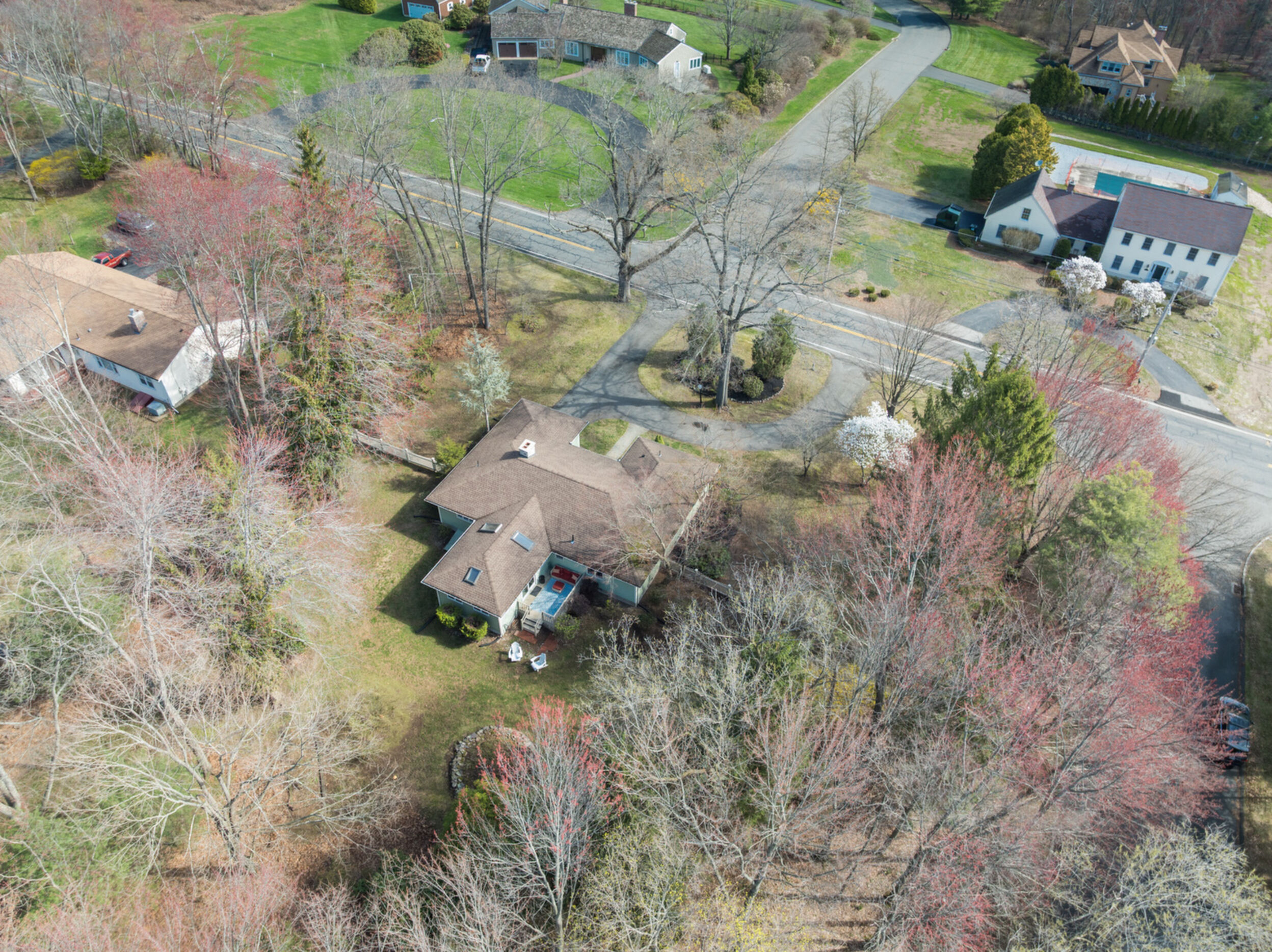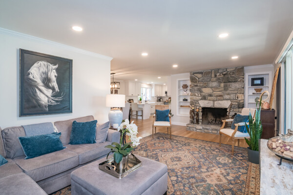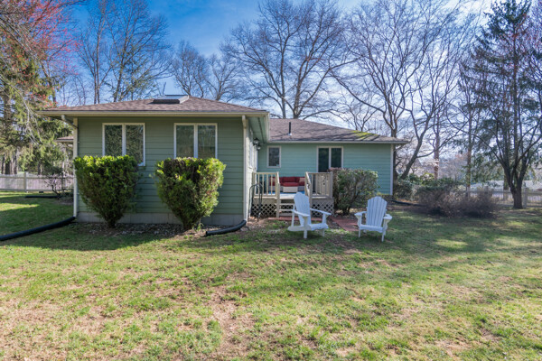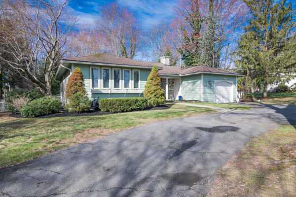 This stunning ranch has been meticulously remodeled! The gourmet kitchen has quartz counter tops with a breakfast bar, custom cabinetry, farmhouse sink & triple windows overlooking the expansive yard. The living room features a floor to ceiling stone fireplace, wood floors, recessed lights & crown molding. The open floor plan allows you to entertain with ease with a dining room that leads to a showstopping family room/sun room that includes skylights, cathedral ceiling, wainscoting & slider to the deck. Wait until you see the gorgeous primary en-suite! Very spacious bedroom with custom walk-in closet & fully remodeled spa-like primary bath with glass enclosed shower. The 2nd bedroom is also an en-suite with another equally impressive remodeled bathroom! A new half bath was added to the floor plan. This home sits on almost an acre, located on a corner lot yet yard feels private & has been fenced in - plus a circular driveway. Truly move-in ready, this home has been transformed!