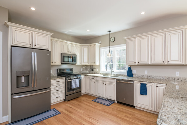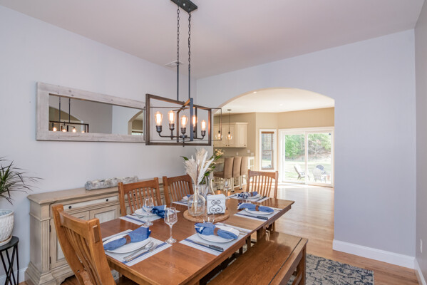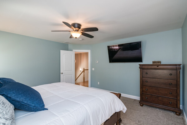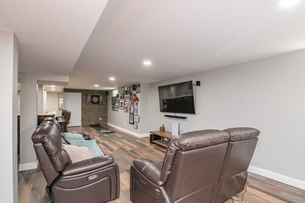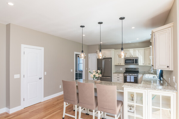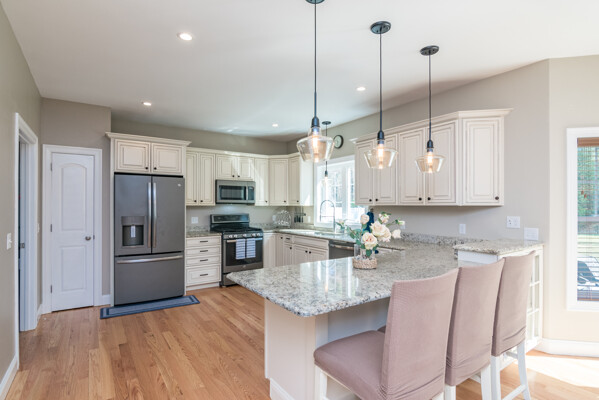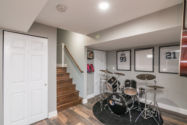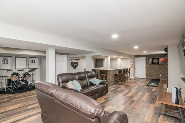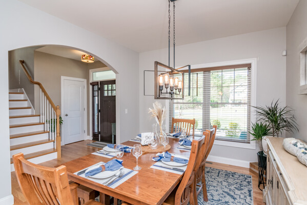 Stunning Craftsman with attention to detail in sought after neighborhood! This young home features all the amenities you are looking for including a covered front porch & spacious open floor plan. Gourmet kitchen has granite counters, beautiful cabinetry & lighting, over-sized dining area with sliders to backyard & opens up to fabulous family room with wood burning fireplace insert. Very large dining room has decorative arches. The 1st floor has a mud room & lav entering from garage. The 2nd floor has 2 good sized bedrooms, hall bath with laundry & spacious primary en suite. The bonus room/4th bedroom is large & features a sitting room/office space. Many rooms freshly painted. Wait until you see the custom lower level - beautifully done, large entertaining space & bar with stacked stone facade. This home still feels like new construction! The almost acre yard has been fenced, with storage shed & wood shed, above ground pool & hot tub. Great location -This one is a must see!