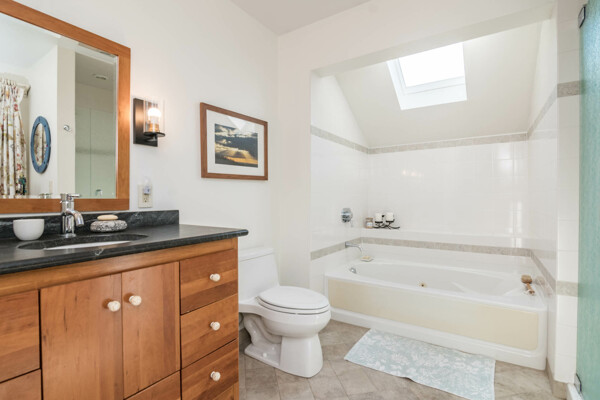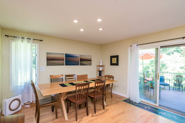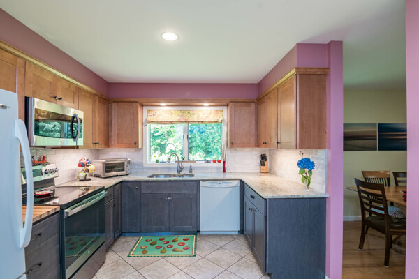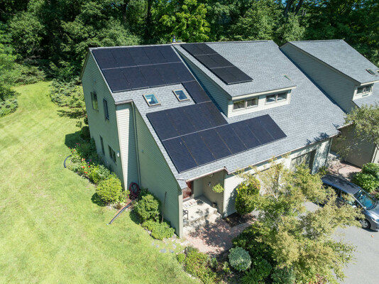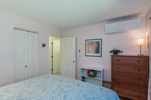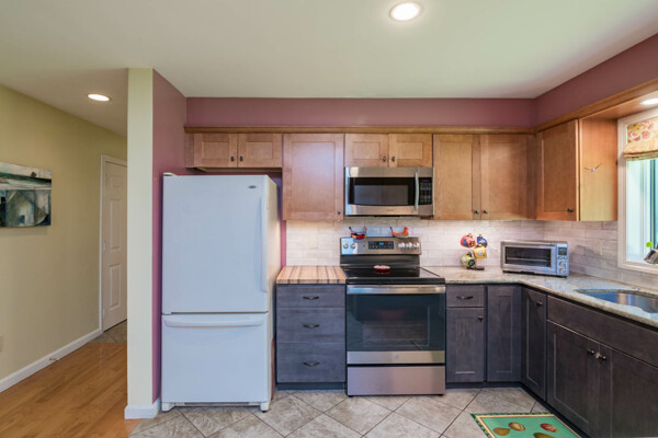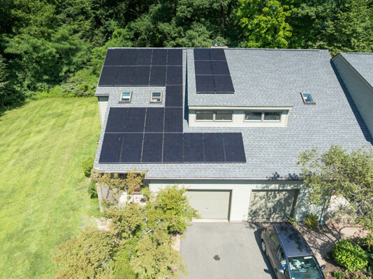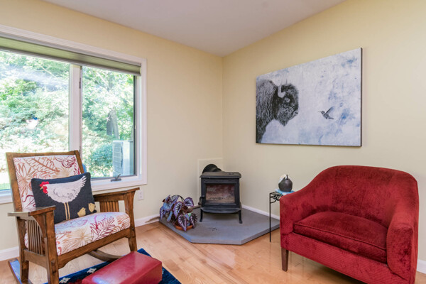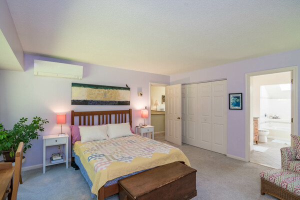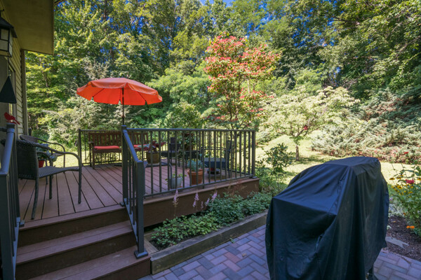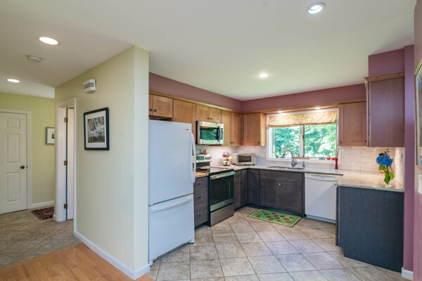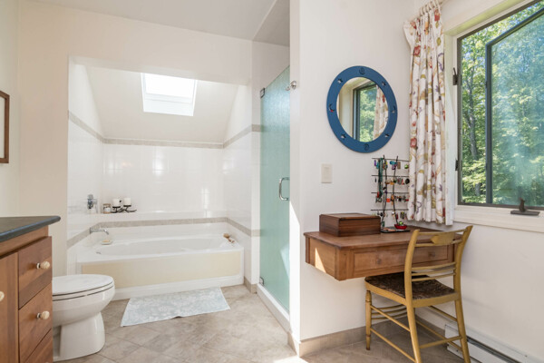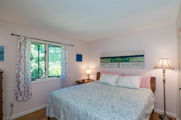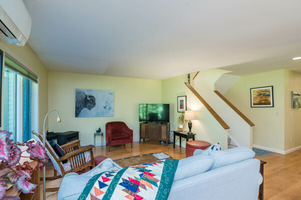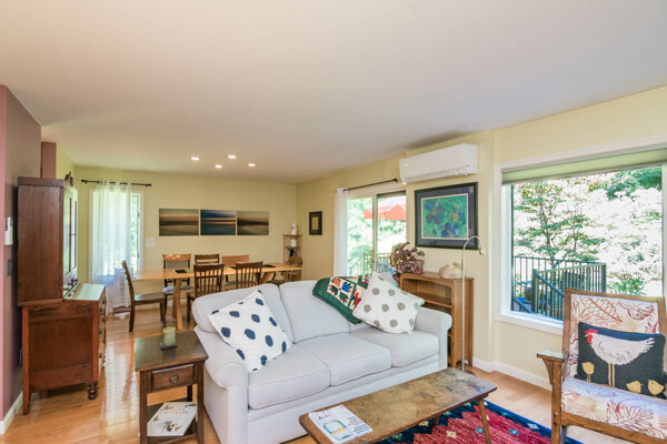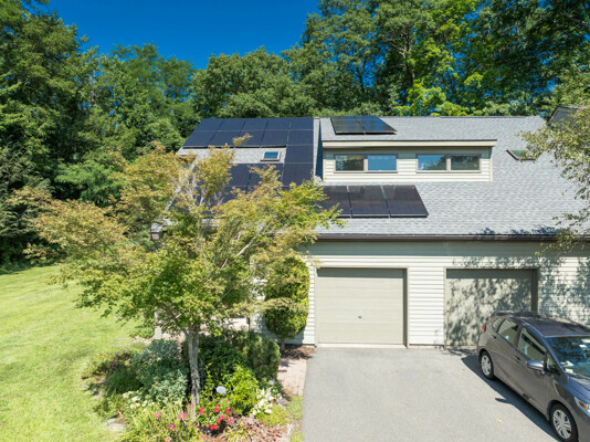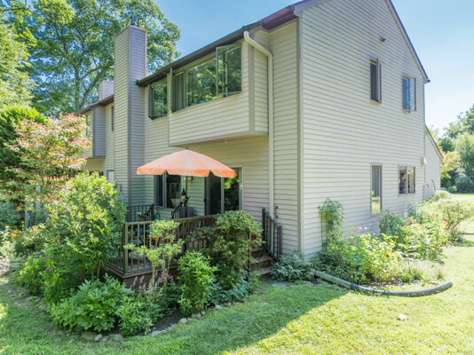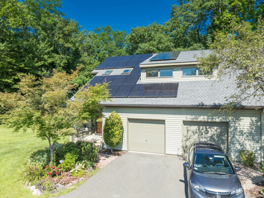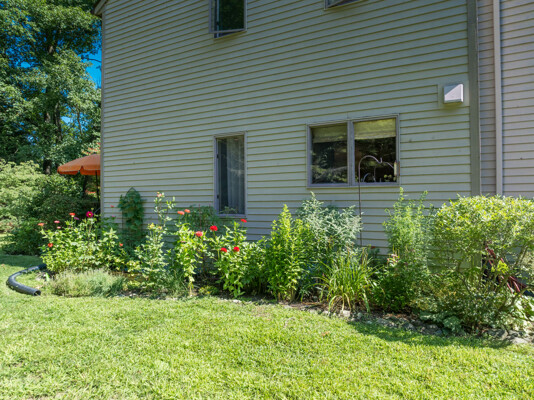This end-unit Townhouse is, perhaps, the most private unit at Fairway Village. Tucked away at the back of the complex and surrounded by mature woods, it offers seclusion and beautiful landscaped perennial gardens enjoyed by birds and other pollinators. A recently updated composite deck and stone patio is perfect for outdoor relaxation and entertaining. Wright Builders and Valley Solar collaborated in 2021/2022 to perform a green energy retrofit with owned solar panels (paired with a Generac Power Cell battery back-up), Mitsubishi minisplits for heating and cooling, and a Rheem Eco-Net hybrid hot water heater. In addition, the kitchen was updated with new cabinetry and tile backsplash and the basement was finished with a legal egress window, adding valuable living space. Close to the community gardens, bike path, and Northampton Country Club, this lovingly maintained unit with energy efficiency in mind, will appeal to buyers looking for comfort, privacy, and sustainable features.