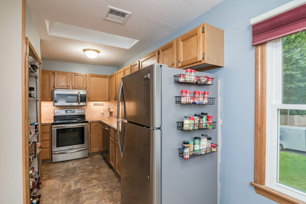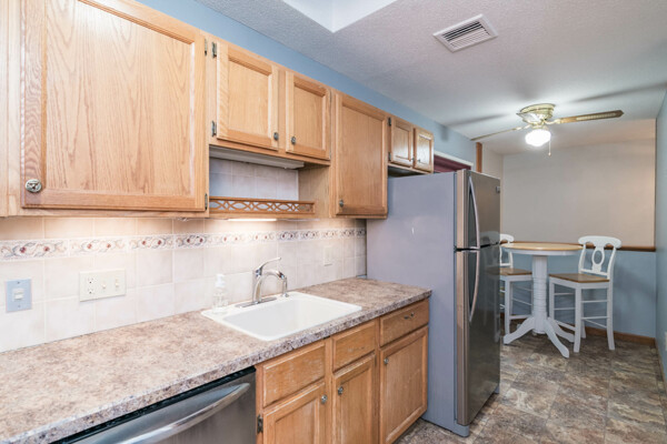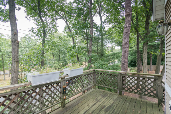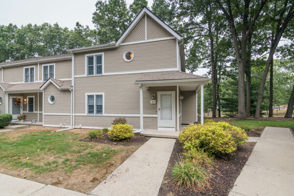 Come view this beautiful garden-style end unit in Park Place Condominiums! This space offers an eat-in kitchen, complete with stainless steel appliances, a tiled backsplash, open pantry & skylight. The combined DR/LR space also boasts a skylight and slider leading to a private deck. The primary bedroom suite offers ample storage with a double closet and gorgeous newer tiled walk-in shower. Both baths have newer extra tall height toilets (2023) for additional comfort! The second bedroom offers laminate flooring, built in bookshelves & a closet. This unit has everything you need to start anew, including a central AC unit (June 2024), GFCI in kitchen & baths (2019) & gorgeous natural light throughout! The unfinished basement offers additional storage space, W/D, set tub and cedar closet for your seasonal wardrobe! Located across the street from Szot Park & nearby amenities with water & sewer included in the monthly HOA, this unit can't be beat! Seller to cover special assessment in full!