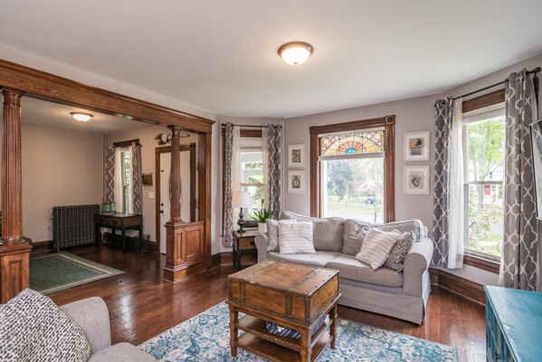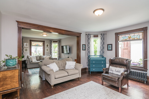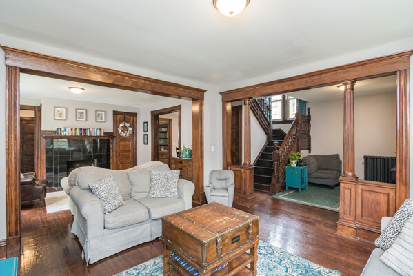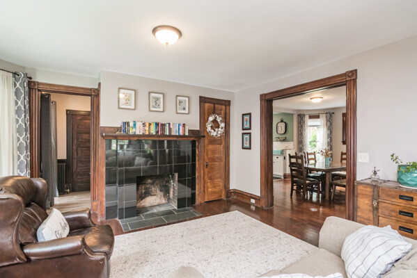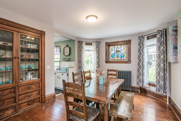 This beautiful, spacious, and well-maintained Victorian home is situated in the heart of the Highlands! This lovely property includes an updated light-filled kitchen with granite countertops, tile backsplash, oversized island with seating, luxury vinyl floors, pantry, French doors to a backyard deck, and more. The third floor has been converted to a large primary bedroom suite with updated tile bath, dressing room, sitting area, and dedicated heating system with central air. You'll love the original woodwork, hardwood floors, fireplace, stained glass, and period built-ins that add charm throughout the home. A first floor mudroom and laundry is another great feature as is the 3-season porch on the front of the house where you can sit and watch the world go by. Step outside into a nice-sized fenced yard great for playing, entertaining, and four-legged friends. This unique mix of Victorian charm with contemporary updates offers much appeal. Lead certified. Come home to the Highlands!
