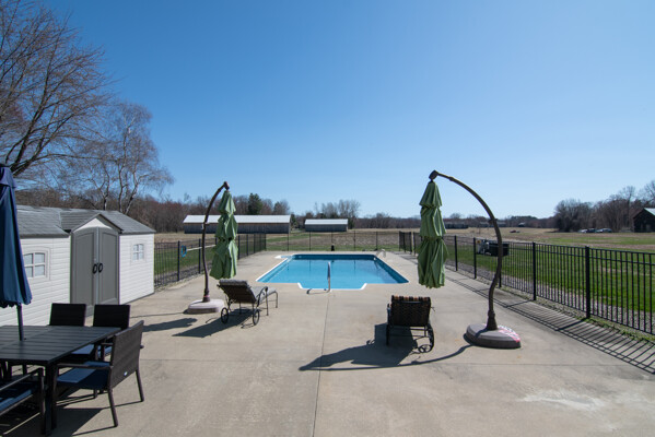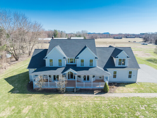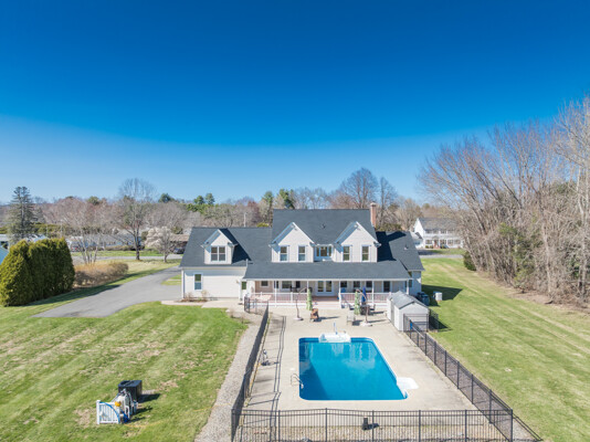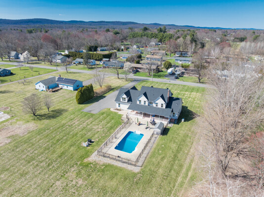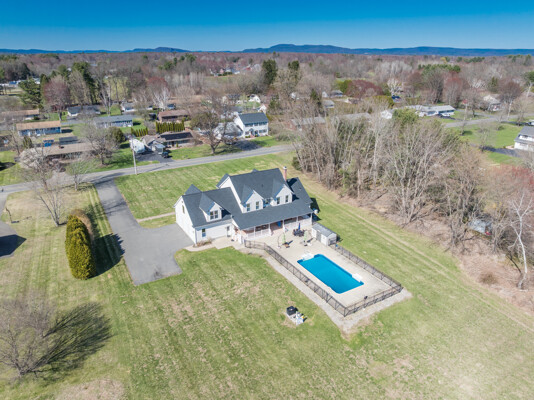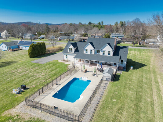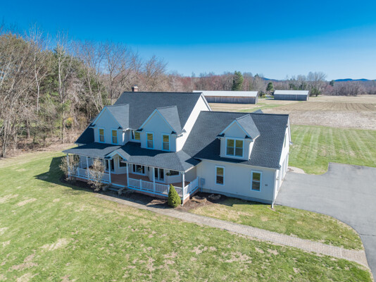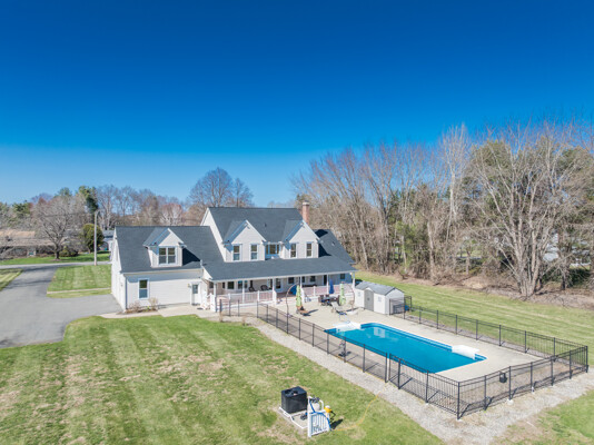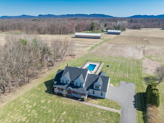 Live the life you've always dreamed of in this palatial oasis! This stunning 4 bedroom, 3.5 bathroom home situated on 2.25 gorgeous acres, is a modern take on a colonial home offering an open concept layout on the first floor, with the quaint charm of a wood stove, wooden beams and natural light pouring in through walls of picture windows. The spacious kitchen is perfect for entertaining, flowing seamlessly into the dining room and living room, and leading out to the expansive back porch overlooking the inground pool and farmland views. The first floor also boasts a grand primary bedroom with a luxurious ensuite bath and walk-in closets. Upstairs, three bright bedrooms provide ample space for guests or a large household, with one bedroom featuring a private bath and the others sharing a hall bathroom. The 'great room' at the end of the hall offers versatility as a den, home gym, or special retreat. With a three-car garage and a large, unique layout, this home is truly a rare find.