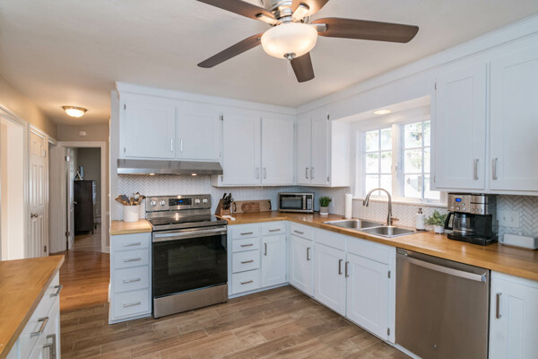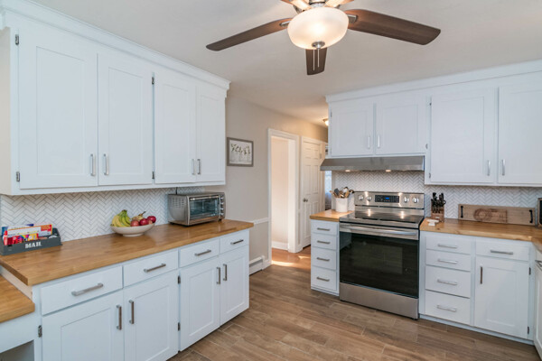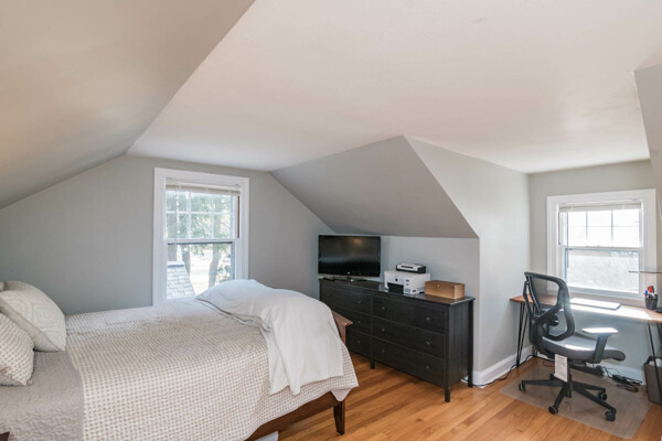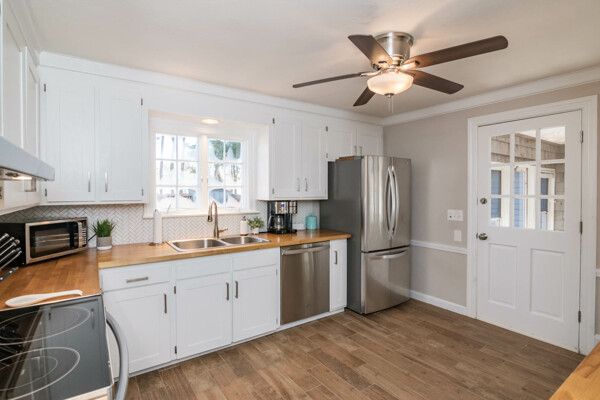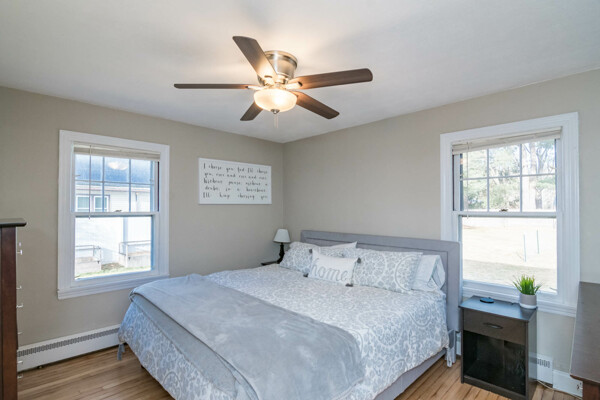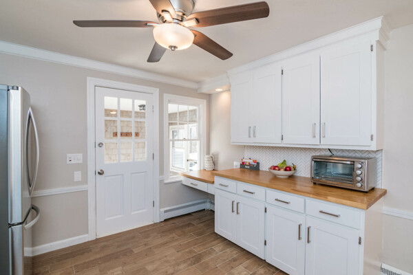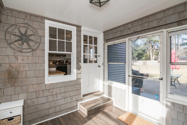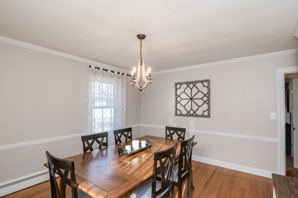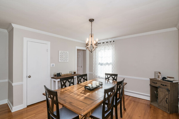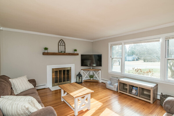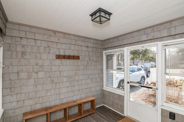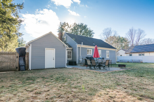 Don't miss out!!! Discover the charm of this updated Cape situated in a network of streets for privacy but minutes from town center and local amenities. The updated kitchen (2021) features stainless steel appliances, butcher block counters, new flooring, and an abundance of cabinet space, flowing into a refreshed living room with crown molding, wood floors, fireplace, and a picture window that fills the space with natural light. Former fourth bedroom now a stylish dining room with crown molding and chair rail. The first-floor main bedroom with wood floors is near a beautifully updated full bath (2022). Two additional bedrooms with wood floors upstairs. Three-season room offers you access to a handy one-car garage or fenced-in backyard for play or relaxation with newer patio (2020) and shed. Bring your ideas to the partially finished basement with a bar to customize your home experience. Get ready to make this place your own!