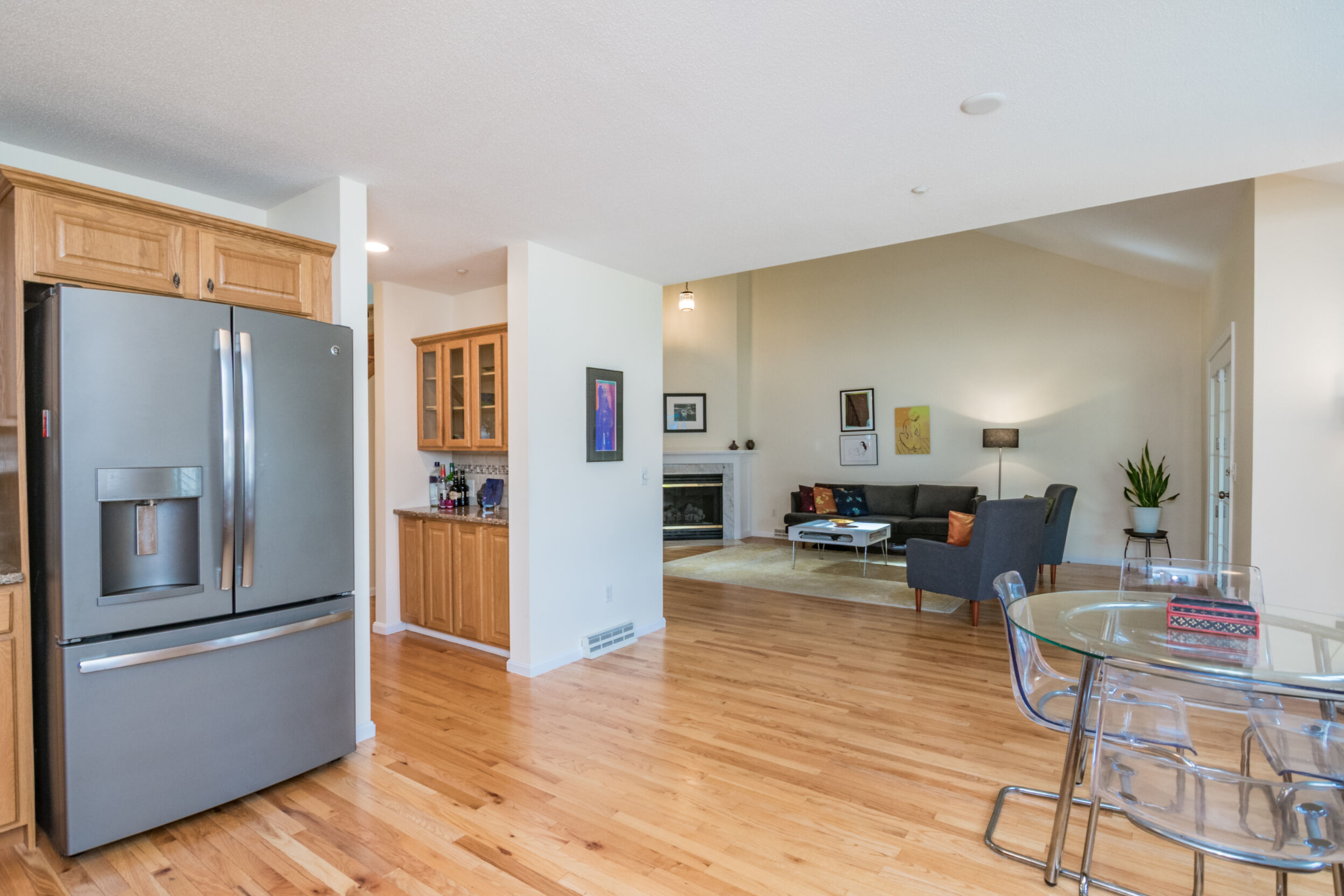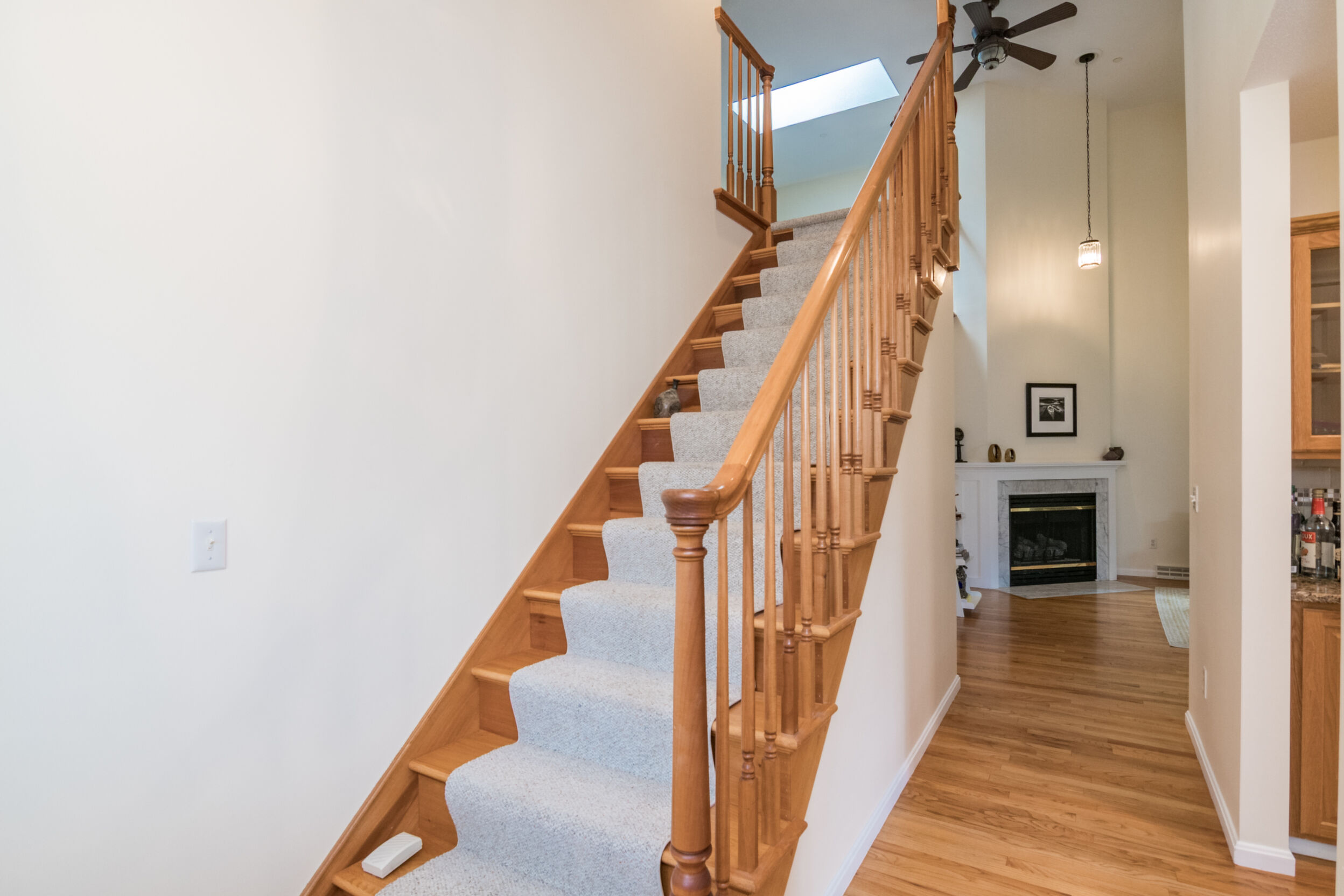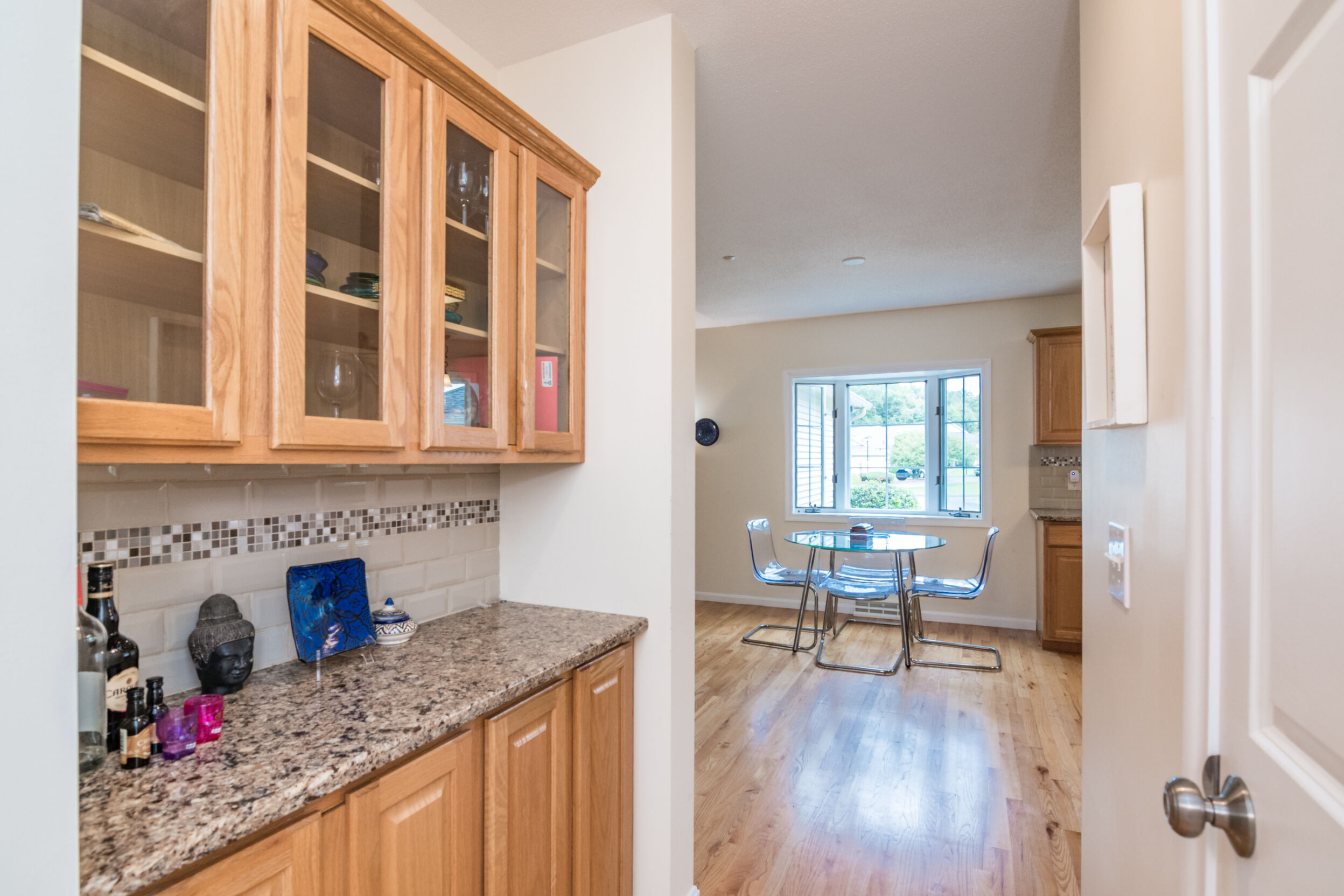 Exceptional garden unit at Pine Grove......Meticulously maintained with open floor plan boasts gleaming hardwood floors throughout the living, dining, kitchen areas. Living room has a vaulted ceiling, with balcony, gas fireplace and built in entertainment area and is adjacent to the screened in porch. The spacious kitchen/dining area has newer stainless appliance, abundant cabinets, granite counters and separate bar area. The main bedroom has its own bath and large walk in closet. The second bedroom has its own private deck. The lower level has a large carpeted room with custom storage for a bonus area for exercise or hobbies. Recent updates include a new hot water heater, new skylight, and new roof. This unit is situated on the back corner which provides much privacy with large green space and is close to rear pool. The complex also has tennis and pickle ball courts for your enjoyment....Showings start 10/03 11:30-2:00, 10/4 11:30-2:00 , 10/5 12noon-2:00...BY APPOINTMENT ONLY