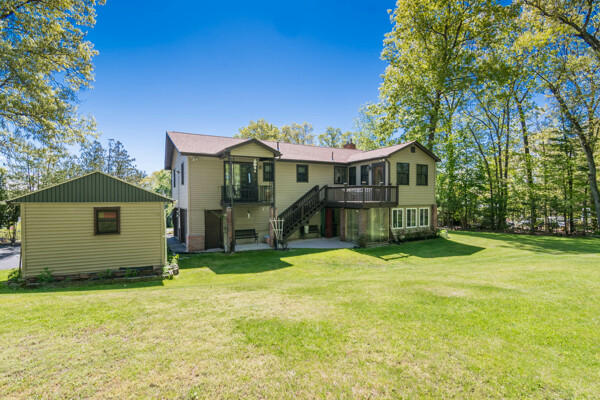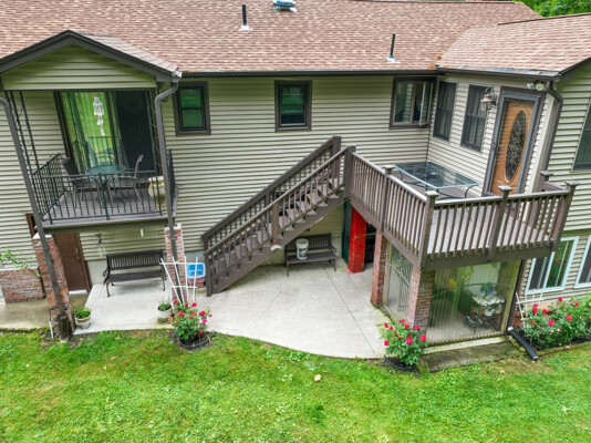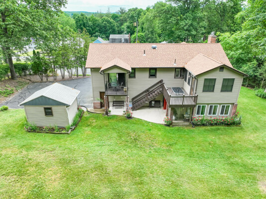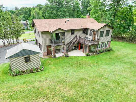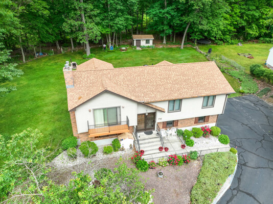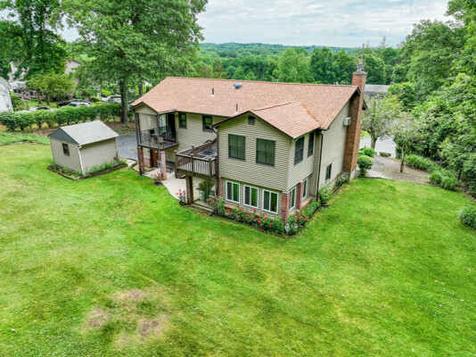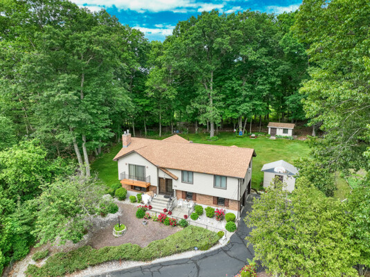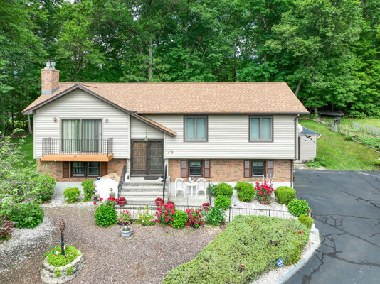Discover this amazing Raised Ranch on a cul-de-sac street surrounded by natures beauty. Enjoy views from two balconies & a raised deck overlooking the park-like grounds featuring a patio, outdoor fireplace, handcrafted seating & two sheds--one with power for a portable generator. The living room offers a gas fireplace & sliders to the front balcony & the spacious kitchen boasts an island & stainless-steel appliances. Dining room with wood floors provides access to the deck then down to the lovingly tended backyard. This level also offers a primary bedroom with wood floors, a private balcony & a full bathroom with shower, plus two additional bedrooms & another full bath with tub/shower. Relax in the family room with a gas stove to make things cozy or enjoy the sunroom that opens to the patio. Lower level also includes a half bath with laundry. Seller states updates include roof, windows, flooring, new kitchen range, & water heater. Must see this one to appreciate all it offers!