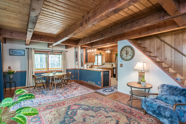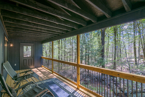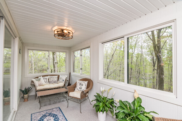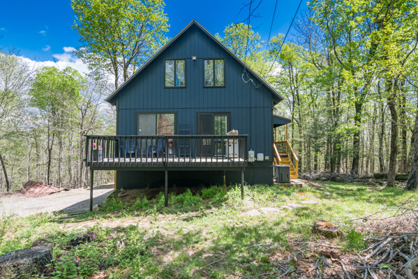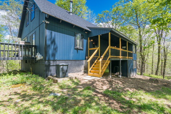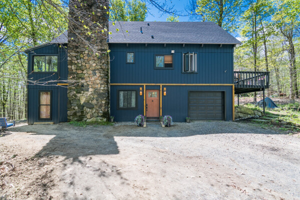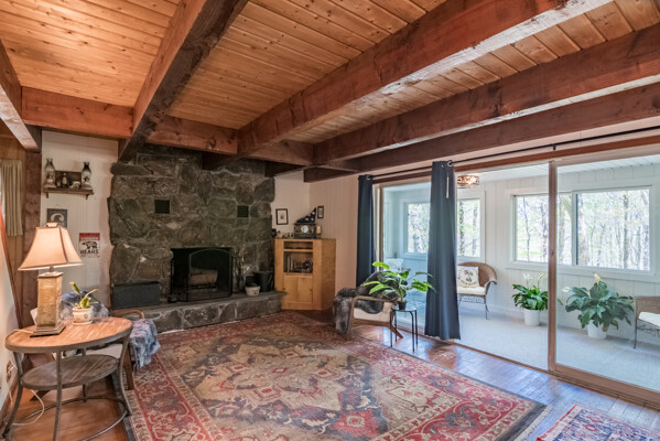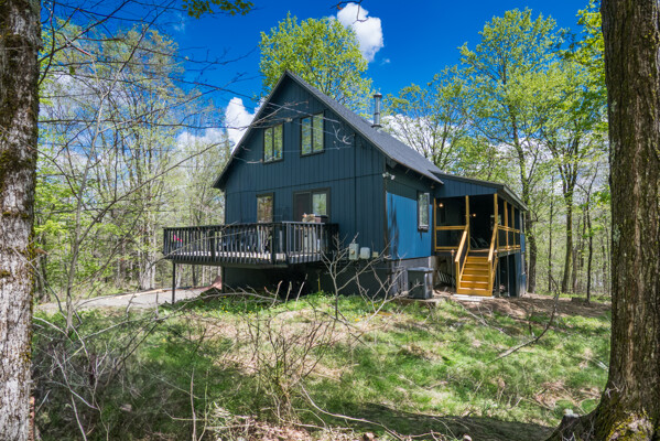Live everyday like it's a vacation with this great mountain cottage located in the Wildwood lake community. New: roof, exterior paint, deck, screened porch and sunroom. Gorgeous large sunroom is the perfect spot to be this summer when relaxing in the evenings after a day at the lake. Or enjoy the screened in porch or large covered deck. When autumn arrives you will appreciate the 2 large stone fireplaces in the living room and den. Main floor primary bedroom has fantastic remodeled bathroom and exterior access to a deck. Main level has a second updated half bath. Second level has two private bedrooms, updated bathroom and tons of closet space. Second home, no problem! The automatic generator will keep the house running when you are not there and the one car garage is great storage for an extra car. The completely wooded lot makes this a perfect lock it and leave it home. Wildwood Lake includes 2 ponds, 5 beaches, basketball, pickelball, tennis and a campground!