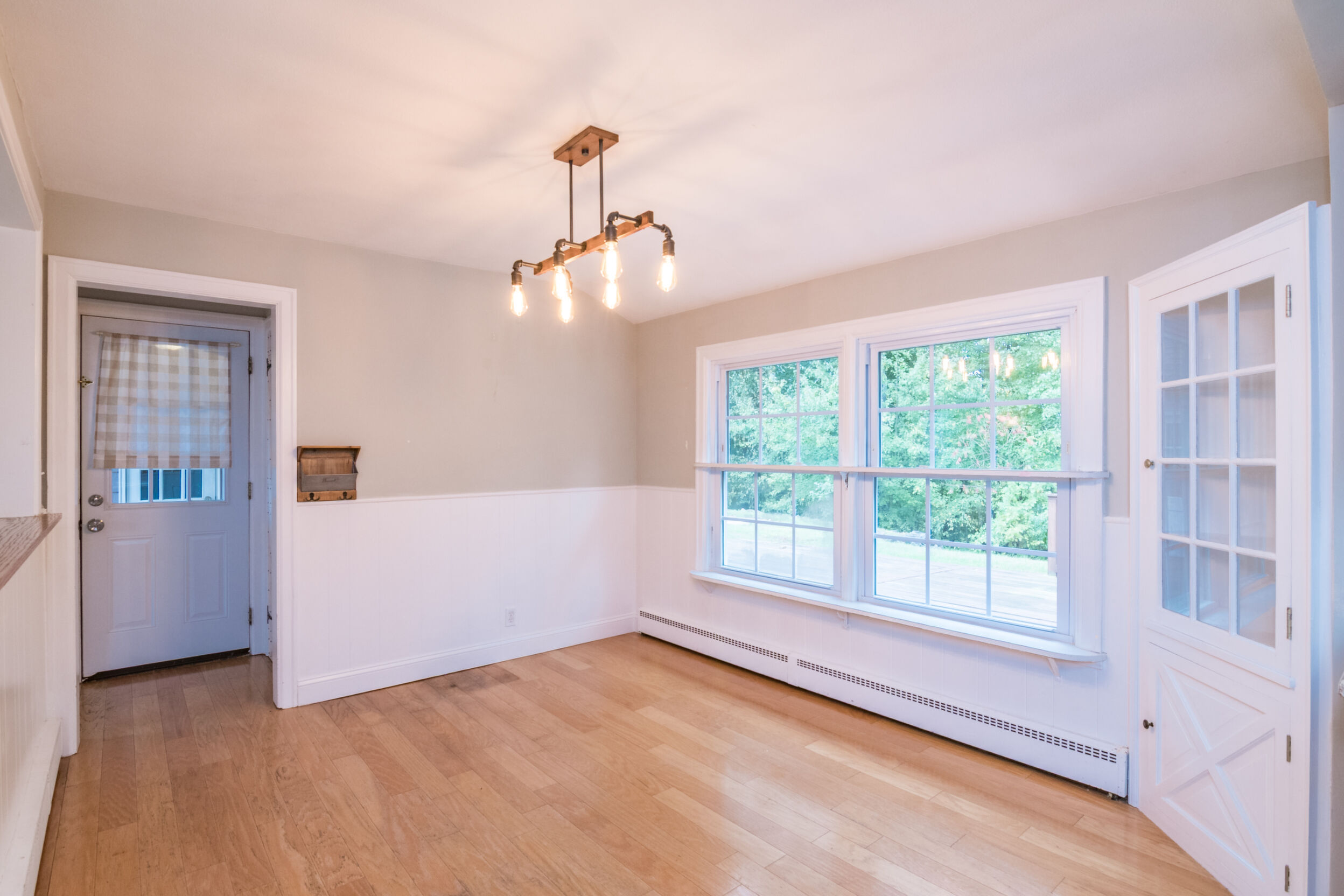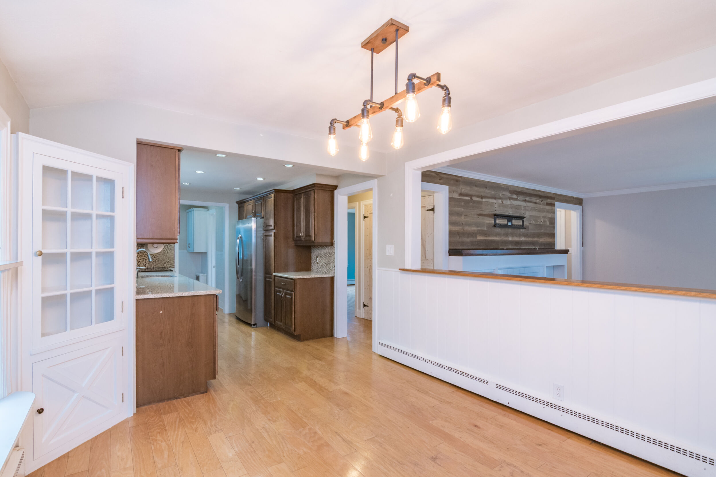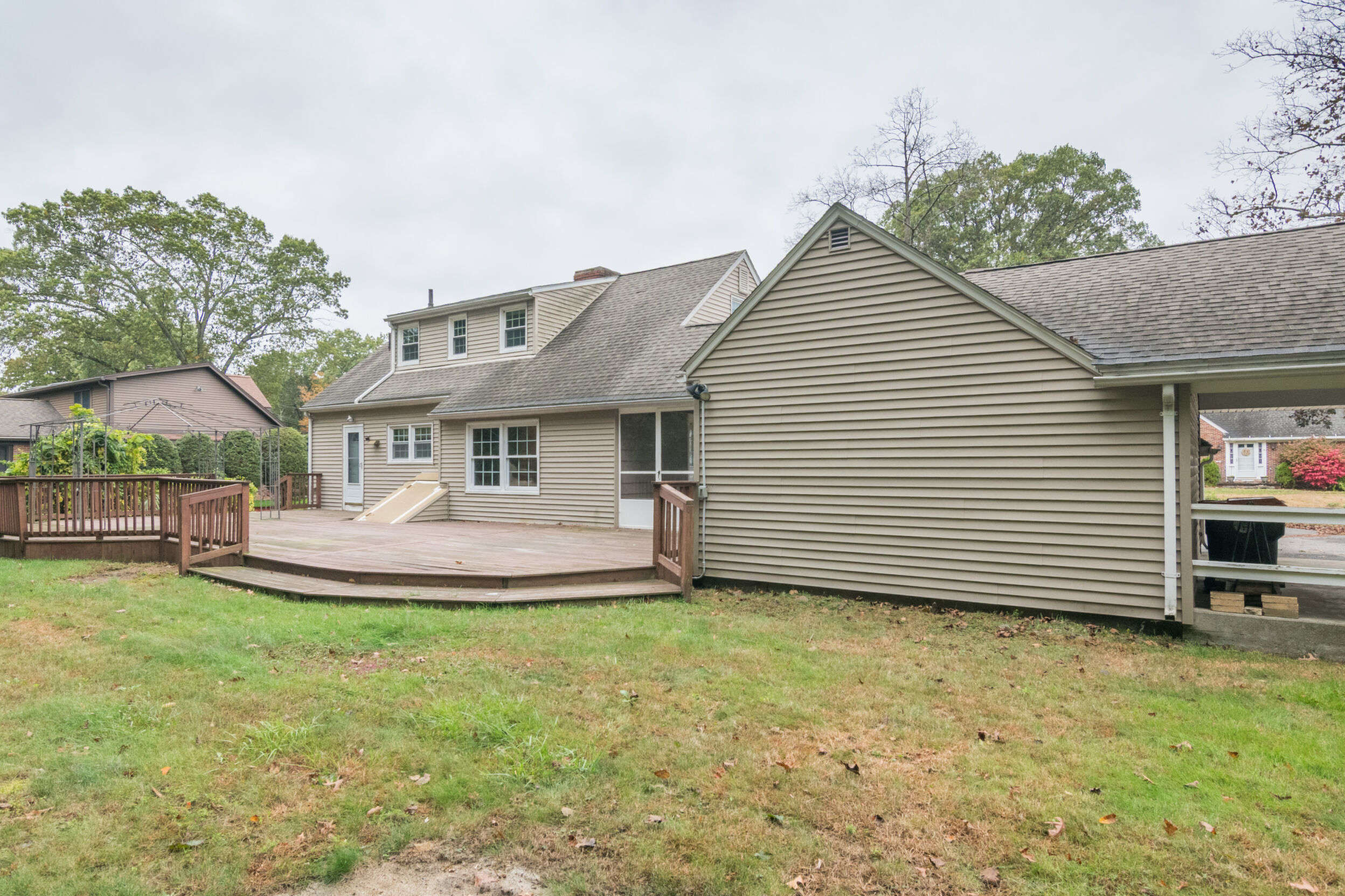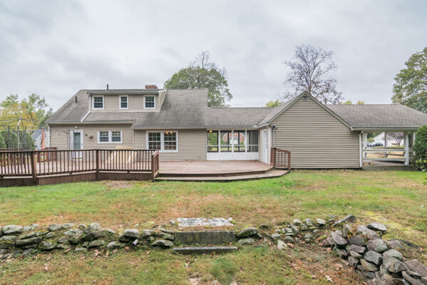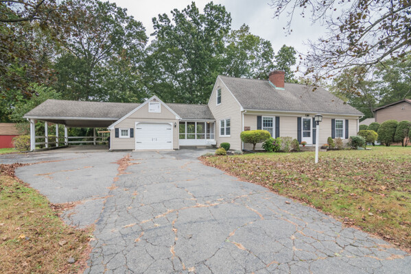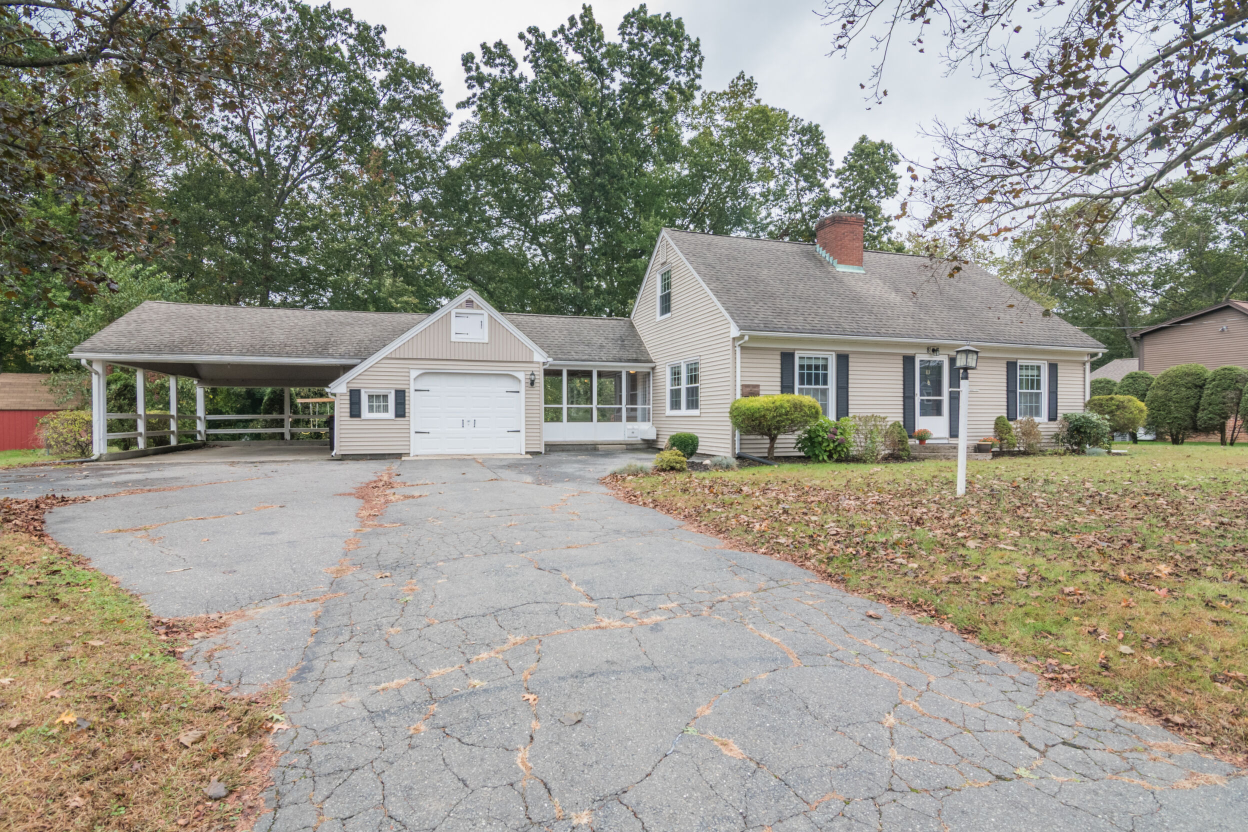 This delightful residence boasts classic architectural details & a cozy atmosphere. Enter through the breezeway, complete with natural wood ceilings & tile flooring, offering endless possibilities for customization. The dining area opens up into the living room with its beautifully appointed custom woodwork & built ins. The kitchen offers SS appliances, granite countertops & beautiful cabinetry. You will find your main bedroom, laundry & a full bath on this level! Add'l updates include refinished hardwood flooring upstairs (APO 2020), painted trim & custom wooden doors. The basement has both finished & unfinished space: plenty of room for storage on one side & entertaining guests in your custom bar area on the other! Step outside and enjoy the peaceful surroundings or entertain your loved ones on the expensive deck. The garage & carport are added bonuses! Located minutes from area amenities, including major highways, shops, restaurants & the Big E fairgrounds! Make it yours today!