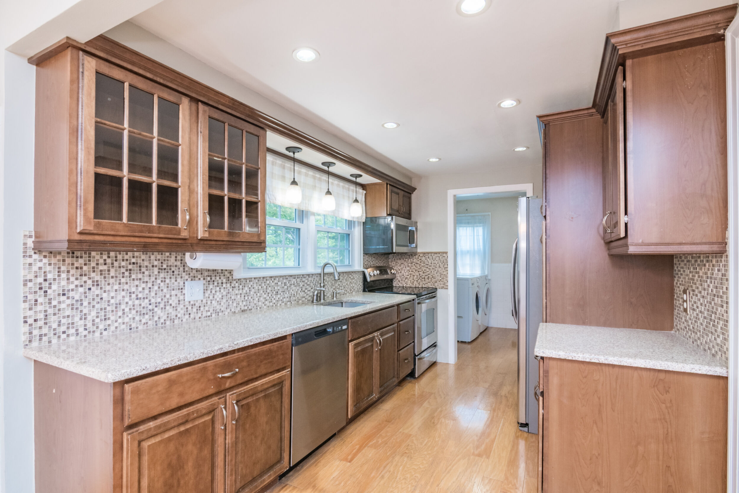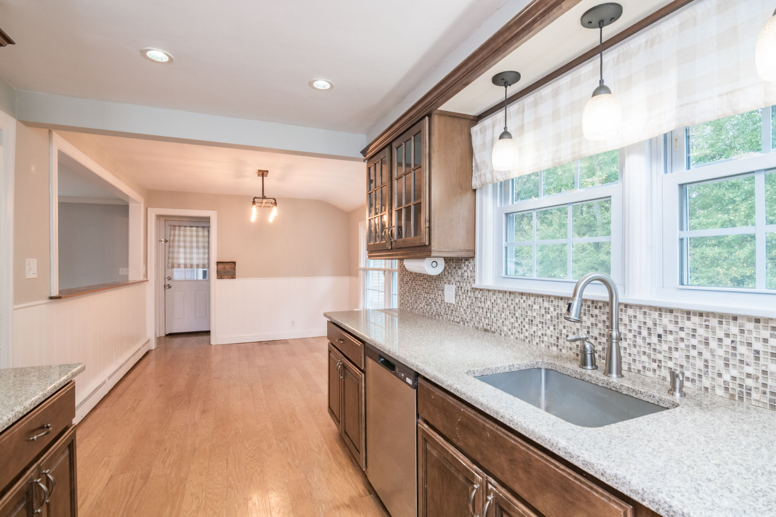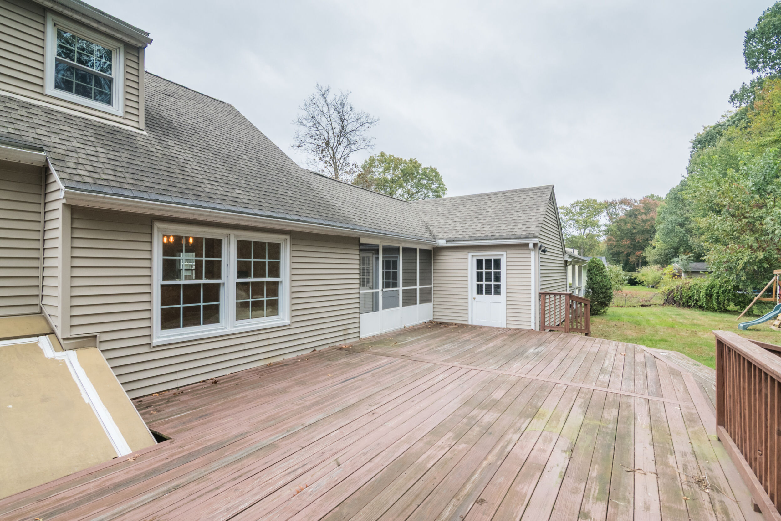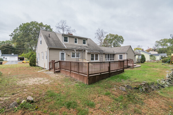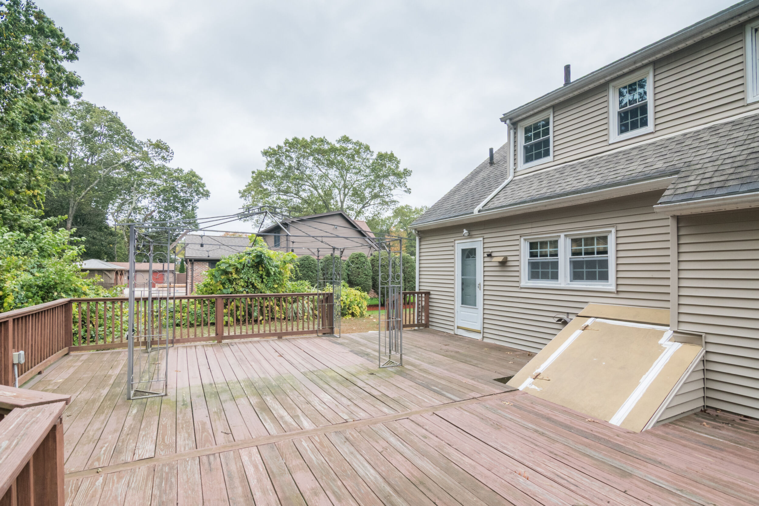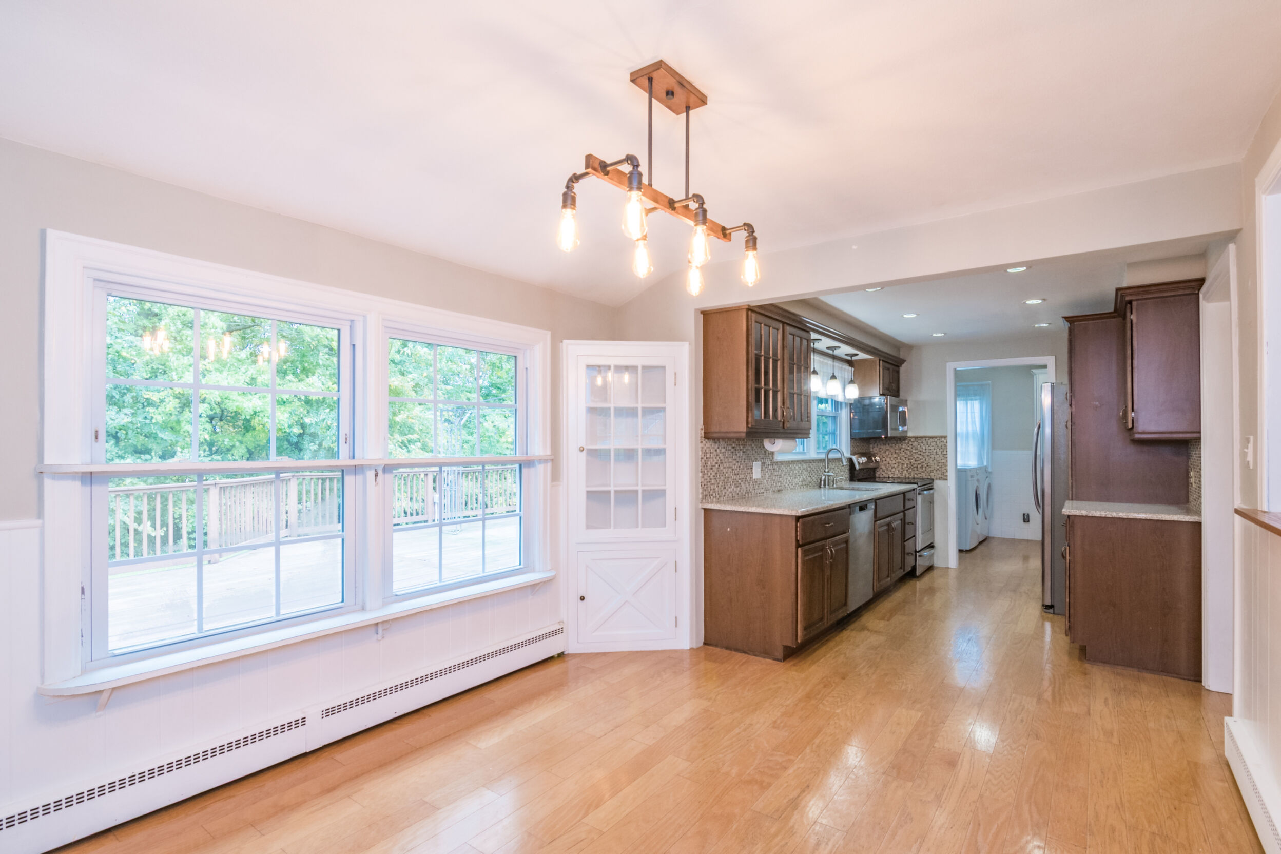 This delightful residence boasts classic architectural details & a cozy atmosphere. Enter through the breezeway, complete with natural wood ceilings & tile flooring, offering endless possibilities for customization. The dining area opens up into the living room with its beautifully appointed custom woodwork & built ins. The kitchen offers SS appliances, granite countertops & beautiful cabinetry. You will find your main bedroom, laundry & a full bath on this level! Add'l updates include refinished hardwood flooring upstairs (APO 2020), painted trim & custom wooden doors. The basement has both finished & unfinished space: plenty of room for storage on one side & entertaining guests in your custom bar area on the other! Step outside and enjoy the peaceful surroundings or entertain your loved ones on the expensive deck. The garage & carport are added bonuses! Located minutes from area amenities, including major highways, shops, restaurants & the Big E fairgrounds! Make it yours today!