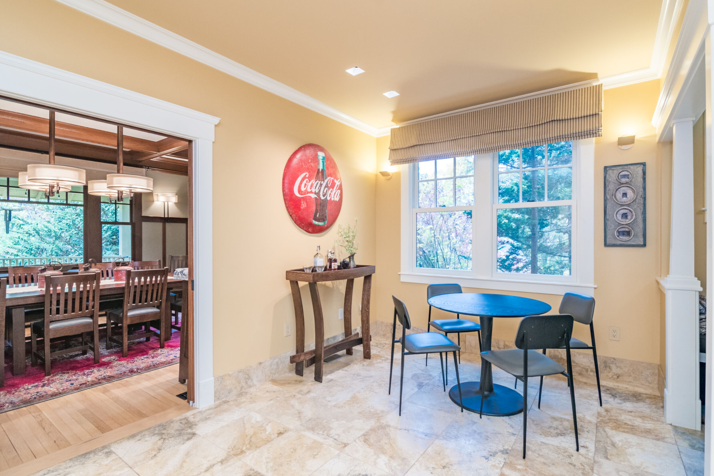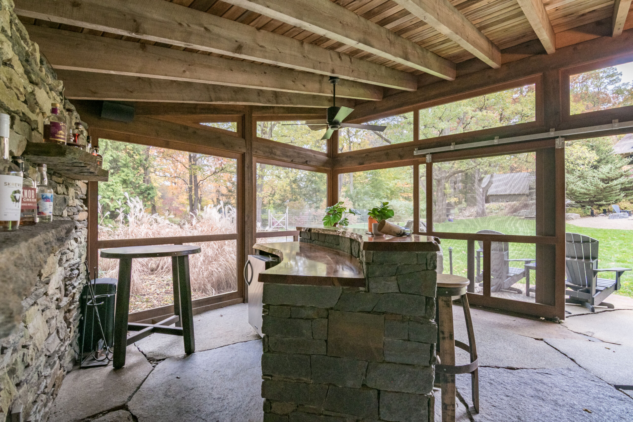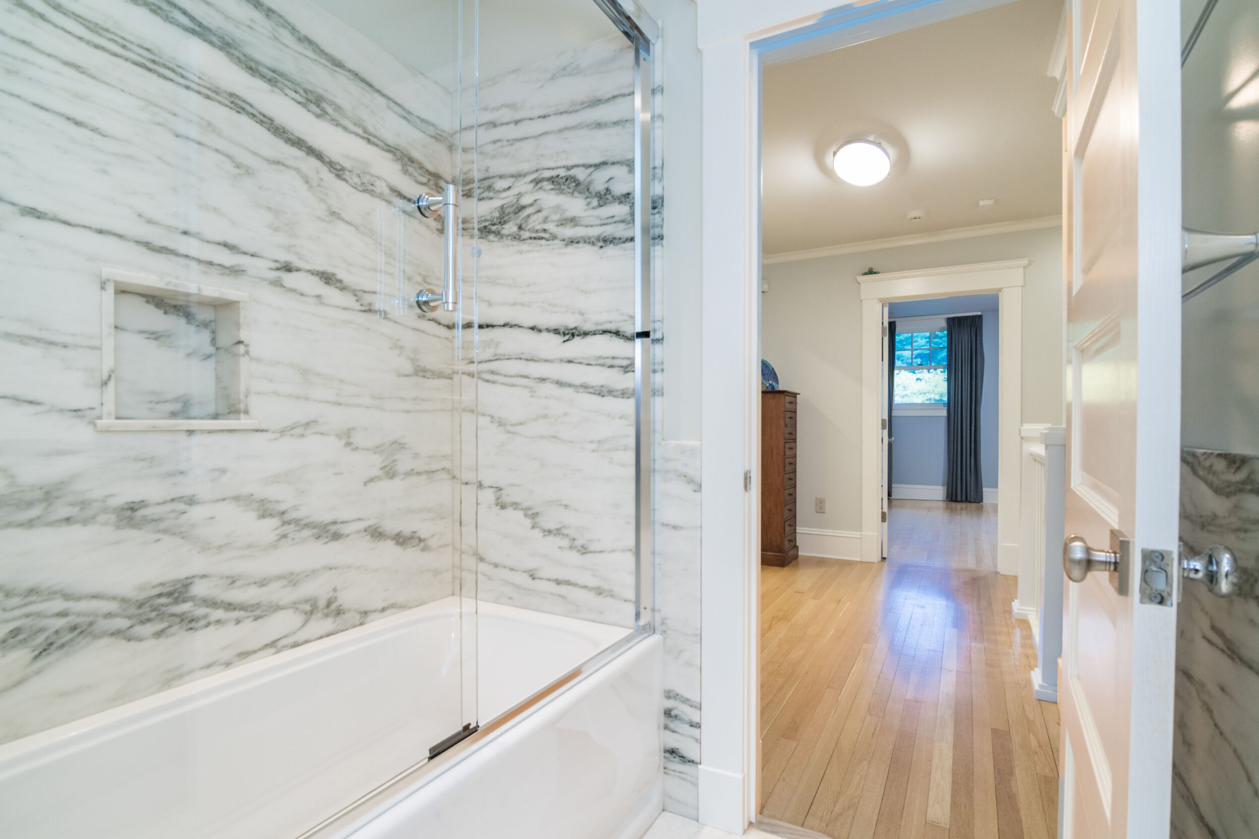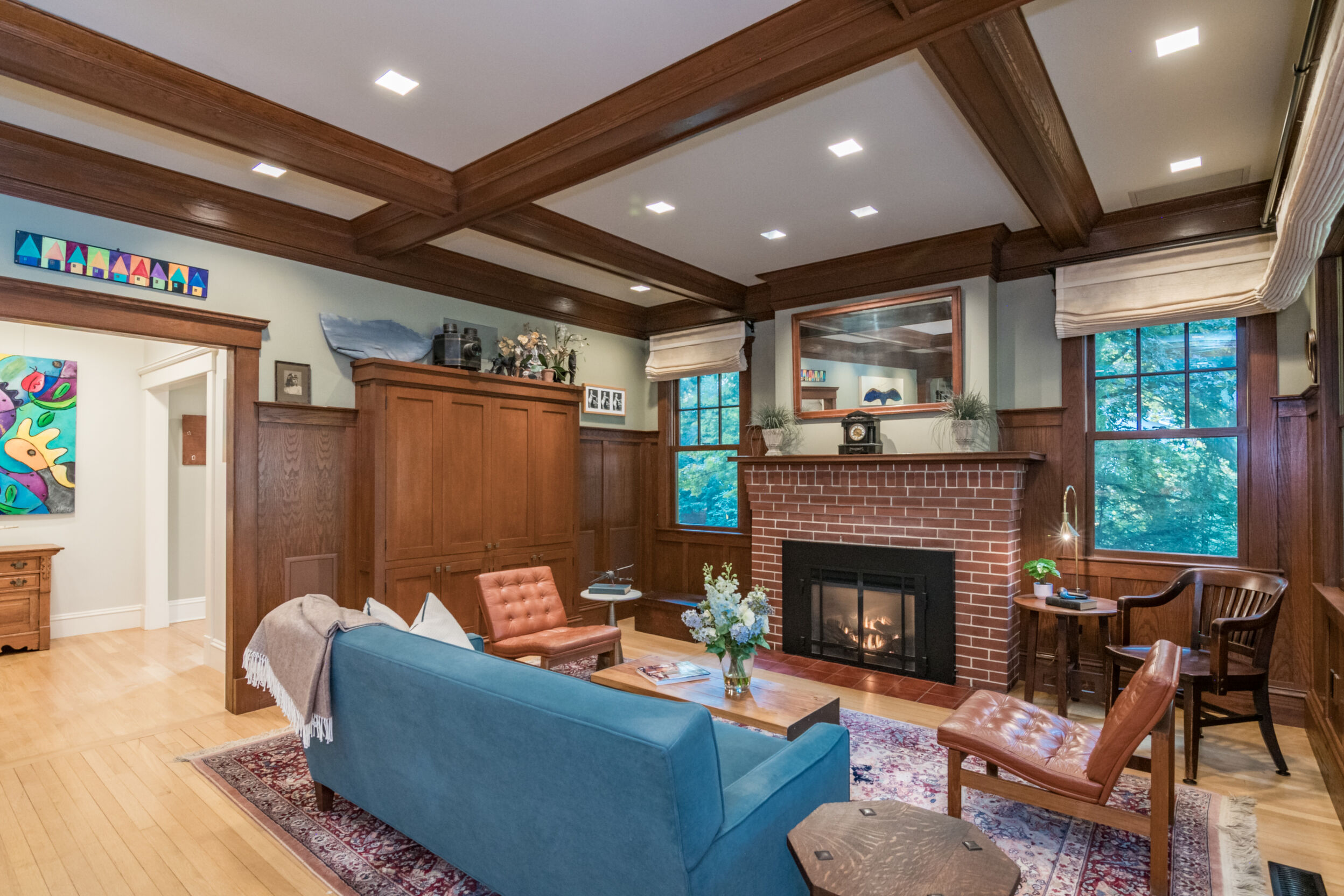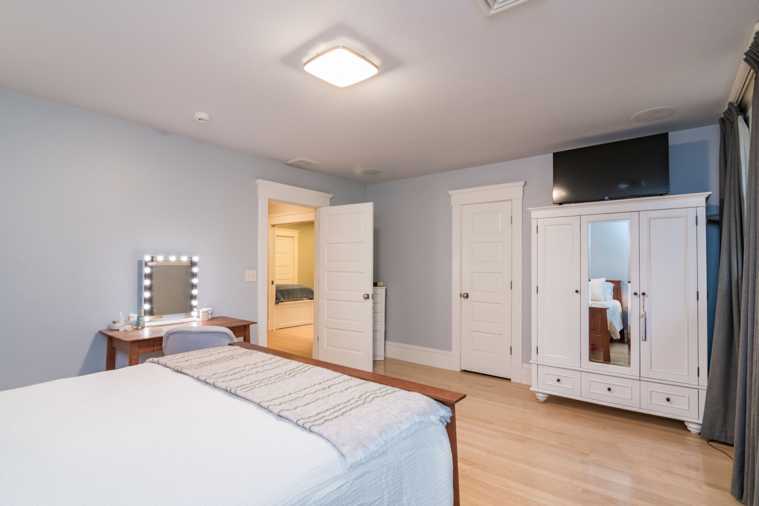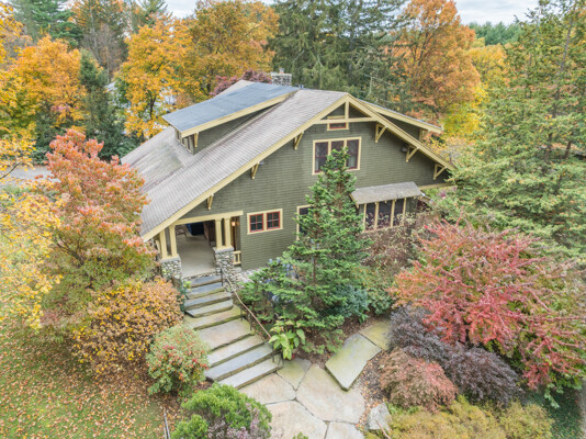 Built in 1910 and completely reimagined, this 4,738 sq ft Craftsman blends timeless architecture with modern luxury. A grand front porch leads to a finely detailed main level with a chef's kitchen, large island, pantry, and breakfast nook opening to elegant living and dining rooms with a gas fireplace that flow to a covered rear porch. Beyond, Goshen stone steps connect to a patio and landscaped yard with lighting, raised gardens, and a screened timber and stone pavilion with massive fireplace and bar. Upstairs, the primary suite offers a spa bath with steam shower, soaking tub, and double vanity. A second bedroom, full bath, and office or third bedroom with gas fireplace complete the level. The finished lower level includes a fourth bedroom, full bath, wine cellar, media room, and laundry kitchenette. California Closets throughout. Features include radiant heat, home automation, whole-house audio, a heated two-car garage with EV charger, and a generator, minutes to Amherst and UMass.