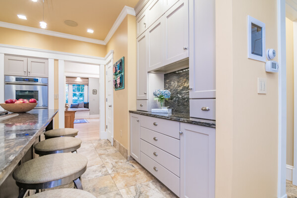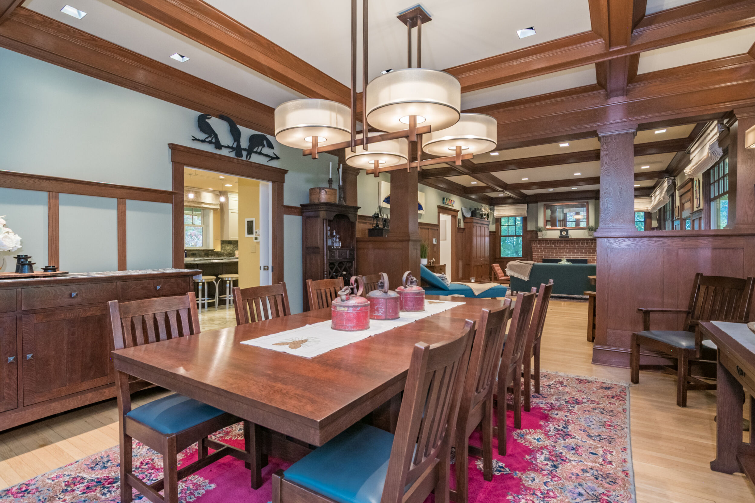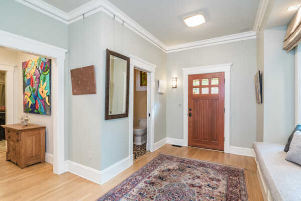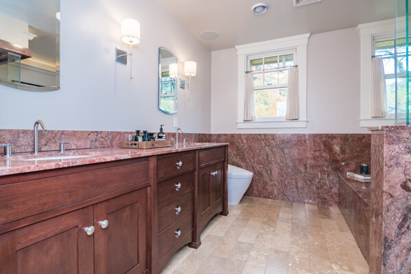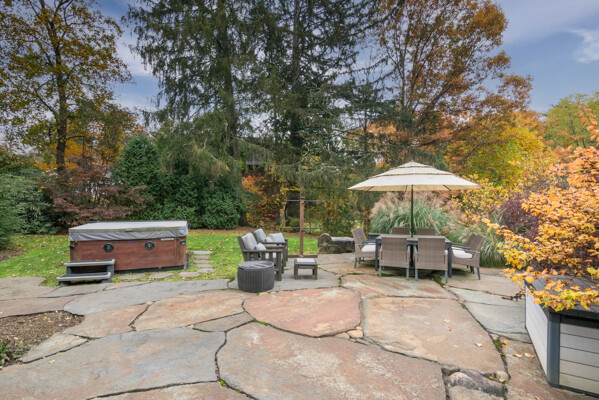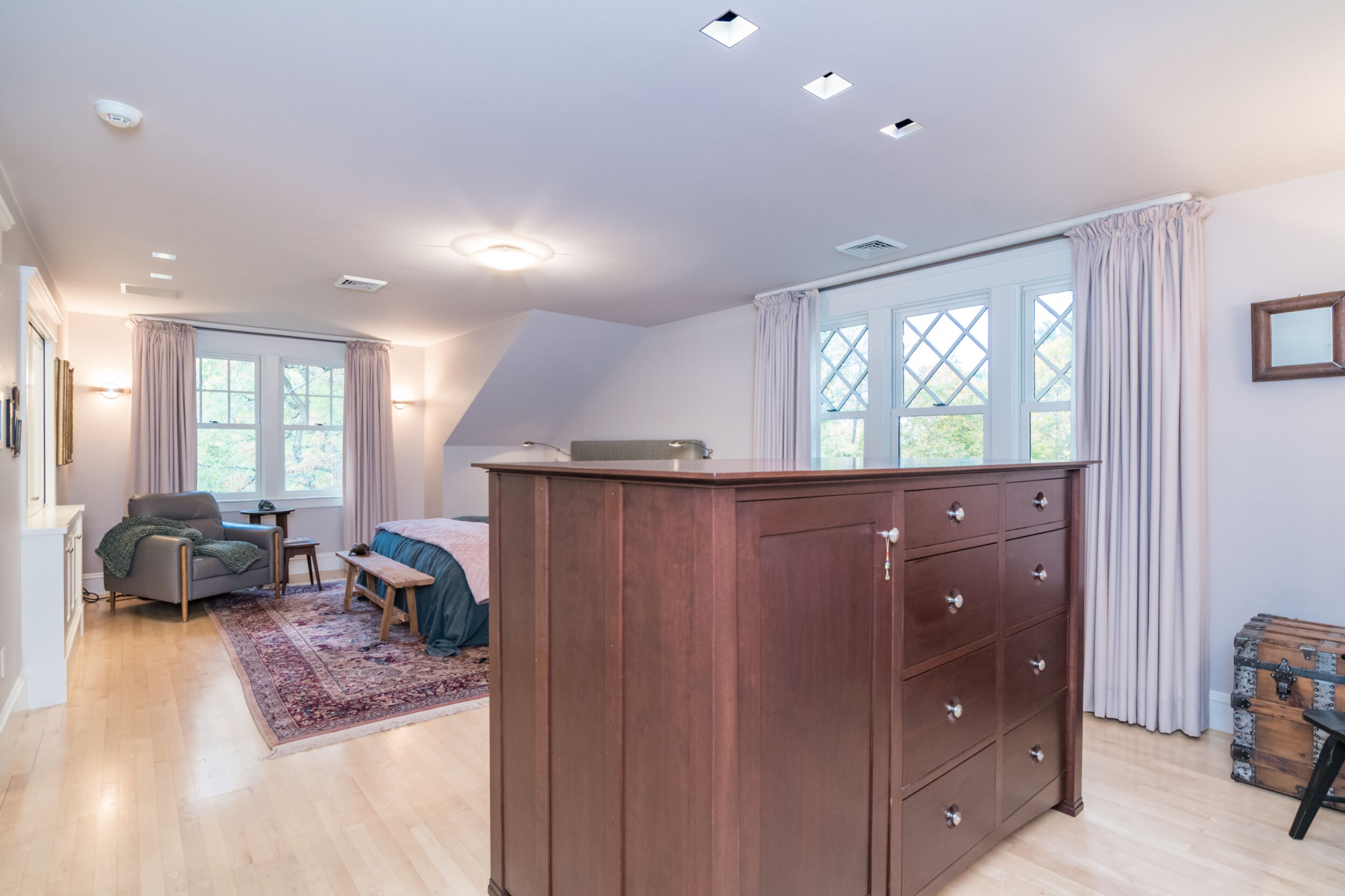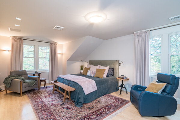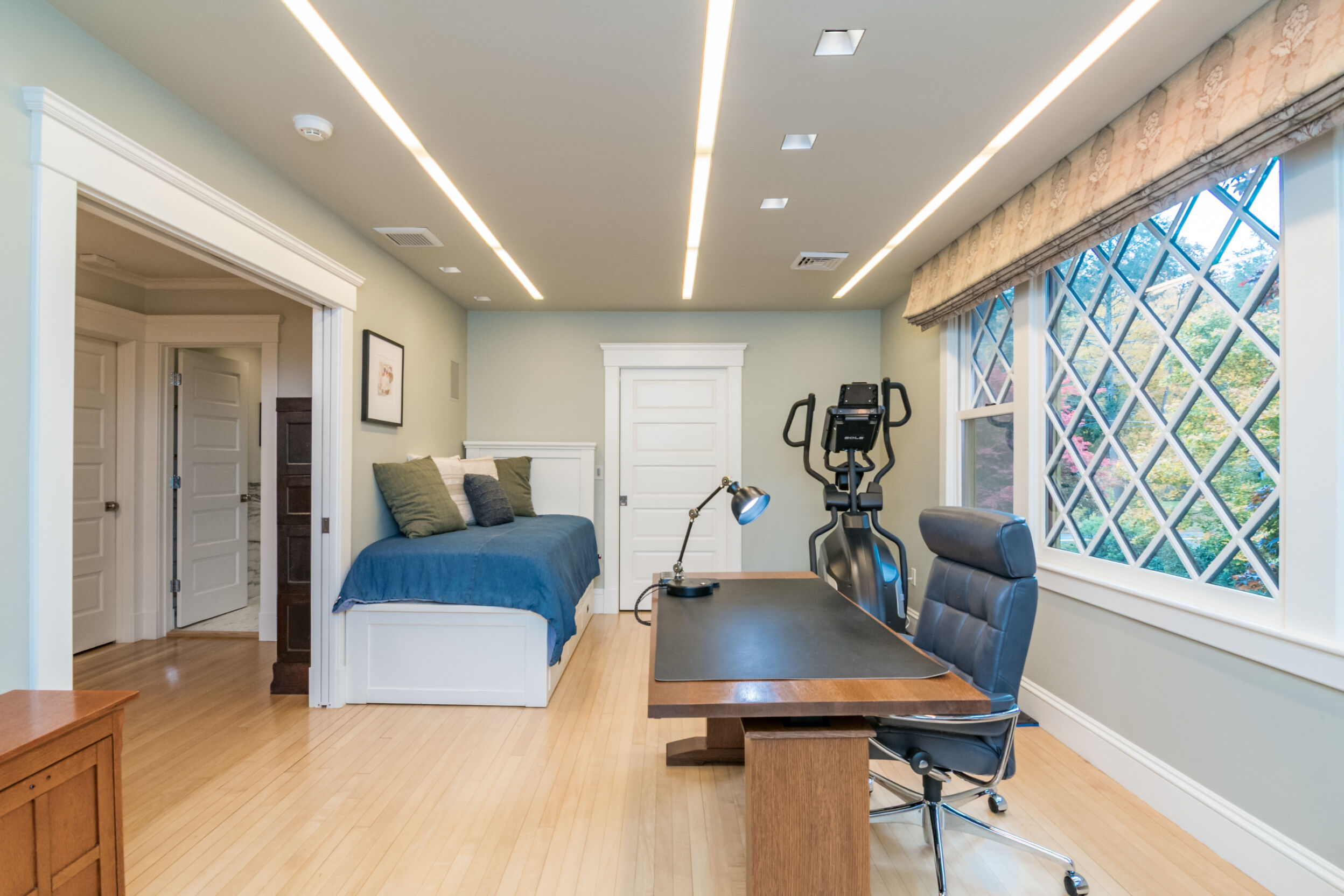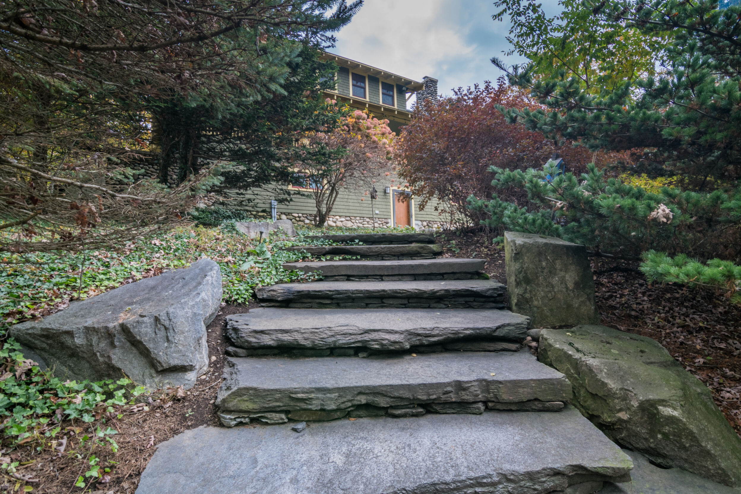 Built in 1910 and completely reimagined, this 4,738 sq ft Craftsman blends timeless architecture with modern luxury. A grand front porch leads to a finely detailed main level with a chef's kitchen, large island, pantry, and breakfast nook opening to elegant living and dining rooms with a gas fireplace that flow to a covered rear porch. Beyond, Goshen stone steps connect to a patio and landscaped yard with lighting, raised gardens, and a screened timber and stone pavilion with massive fireplace and bar. Upstairs, the primary suite offers a spa bath with steam shower, soaking tub, and double vanity. A second bedroom, full bath, and office or third bedroom with gas fireplace complete the level. The finished lower level includes a fourth bedroom, full bath, wine cellar, media room, and laundry kitchenette. California Closets throughout. Features include radiant heat, home automation, whole-house audio, a heated two-car garage with EV charger, and a generator, minutes to Amherst and UMass.