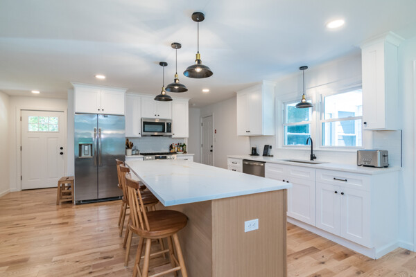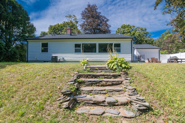 Nicely renovated 3BR 1.5BA updated ranch on nearly 1/2 acre on desirable Florence street! Current owners moved here in June; circumstances changed & they are relocating. Generously sized, the open living/dining/kitchen floor plan has picture windows overlooking the spacious back yard, & a fireplace in the living area. Modern kitchen w/ quartz countertops, all new SS appliances, new cabinets, an eat-in island, & ample storage. Baths updated w/ new tile, vanities, & fixtures. New windows, roof, gutters, central air, HVAC, water heater, interior paint, flooring, & fixtures, along w/ new exterior doors & a new garage door. Current owners added new washer/dryer hookups, utility sink, & interior shut off valves for exterior faucets. MassSave to complete recommended whole house insulation prior to closing. Basement is dry & great for storage/workshop. Enclosed breezeway between the garage & kitchen makes a great mudroom or additional storage area, & offers easy access to a private patio.